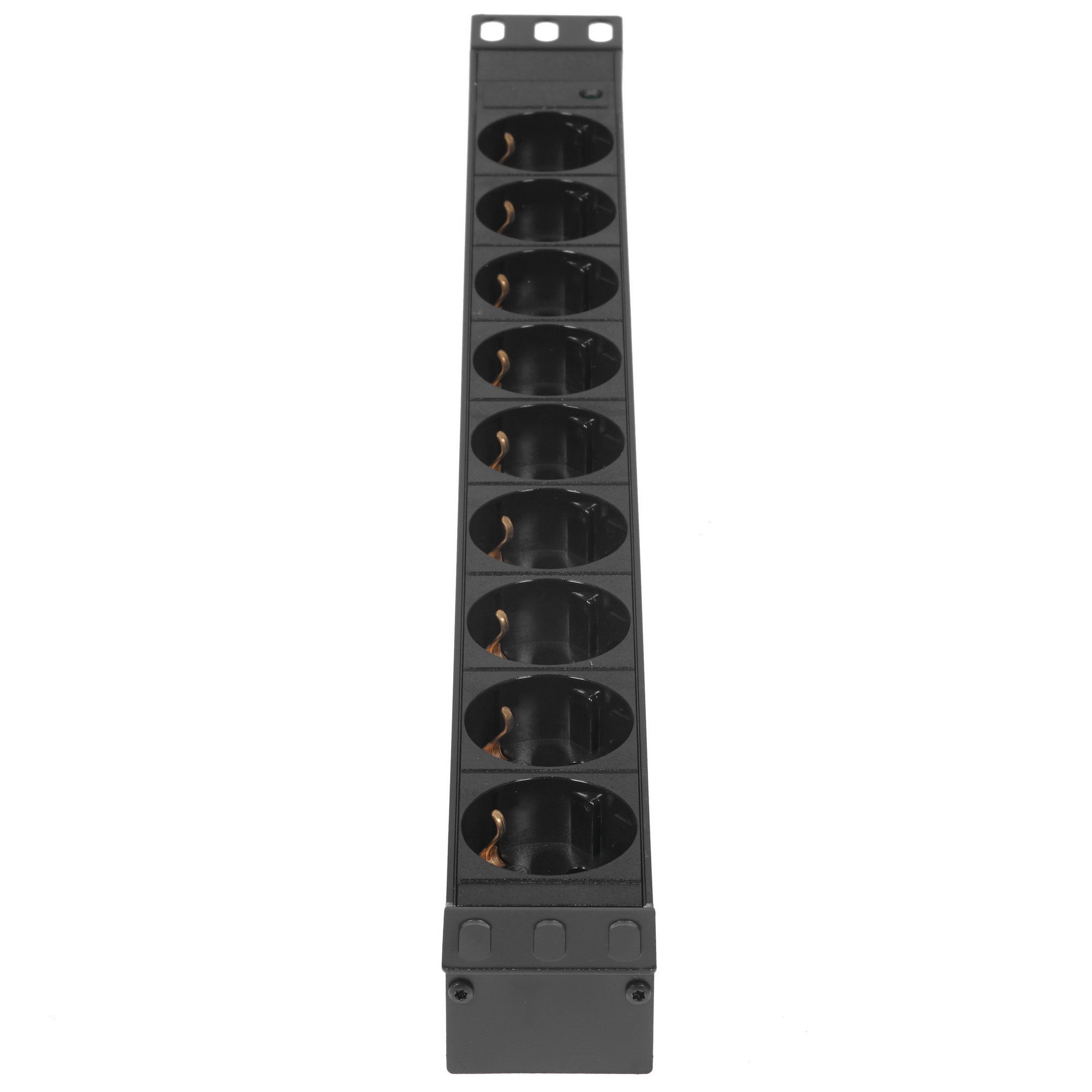 Блок розеток ExeGate ServerPro PDU-19H901 Al-9S-C14 предназначен для совместного использования с серверным и телекоммуникационным оборудованием. Он выполнен в прочном металлическом корпусе из алюминия и предусматривает возможность размещения в стойках типоразмера 19 дюймов. Монтажные крепления на корпусе обеспечивают удобство в установке. Блок ExeGate ServerPro PDU-19H901 Al-9S-C14 оборудован 9 розетками стандартами Schuko и характеризуется максимально допустимой мощностью нагрузки 1800 Вт. На обратной стороне блока имеется разъем IEC 60320 C14, а кабель питания в комплекте не предусмотрен.