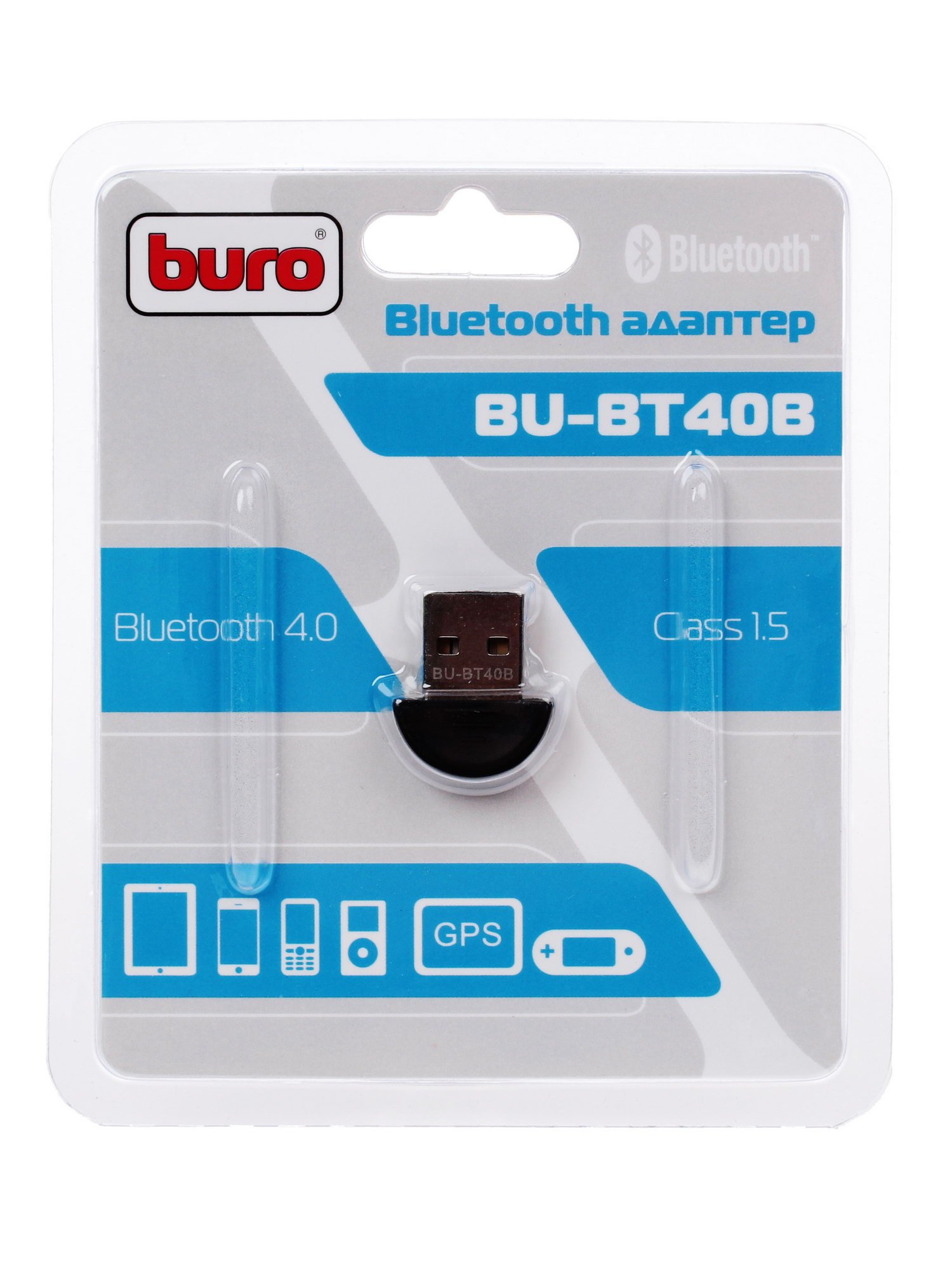 Bluetooth-адаптер Buro BU-BT40B с поддержкой стандарта беспроводной передачи данных Bluetooth 4.0 позволит вам использовать с компьютером/ноутбуком любые беспроводные периферийные устройства. Съемный адаптер, получивший компактный черный корпус, подключается к интерфейсу USB 2.0 и занимает один компьютерный порт. Радиус действия беспроводной сети, созданной с его помощью, составляет 20 метров. Обмен данными между ПК и устройствами, подключенными с помощью Bluetooth-адаптера, происходит на скорости до 3 Мбит/с.