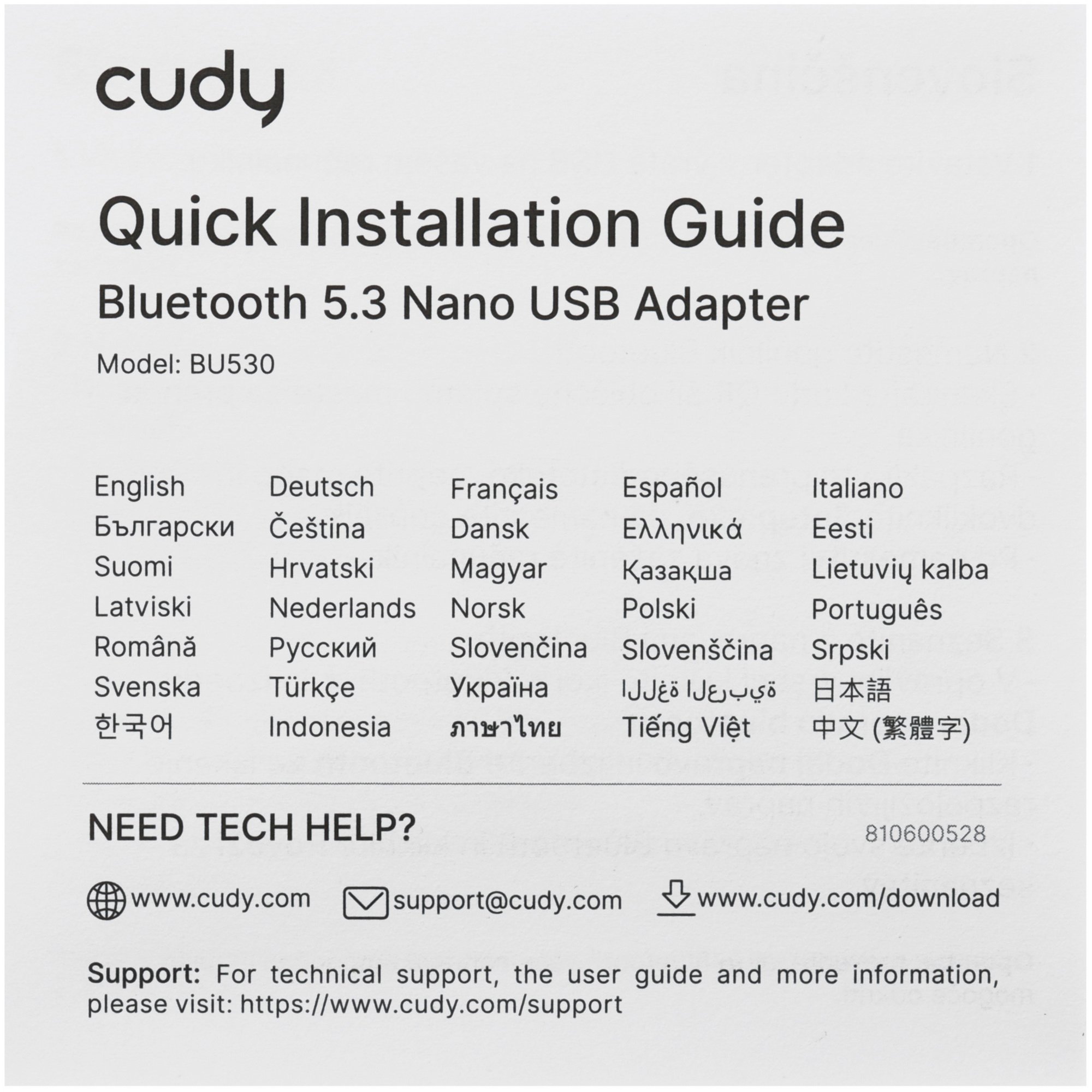 Адаптер беспроводной связи CUDY Bluetooth 5.3 Nano USB Adapter, Nano Size, USB 2.0, Windows 11/10/8.1/7