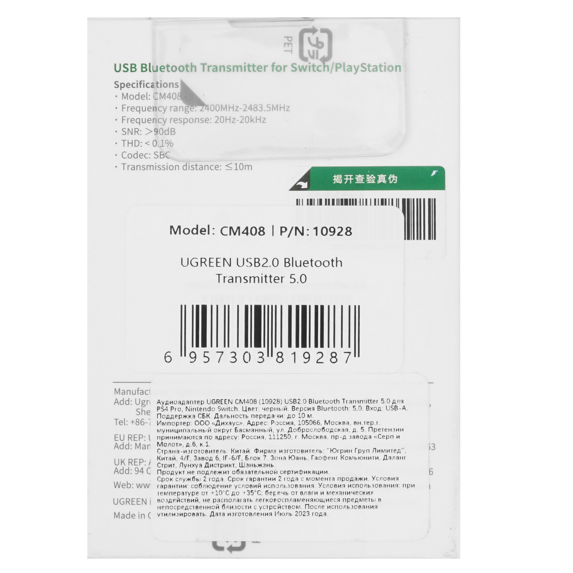 Bluetooth адаптер Ugreen CM408 выпускается как аксессуар для игровой консоли модели PS4/ PS5 или Nintendo switch. Изделие имеет компактный черный корпус и использует для подключения интерфейс USB 2.0. С его помощью вы сможете подключать к ТВ или игровой приставке наушники или акустическую систему по Bluetooth. Трансмиттер с поддержкой стандарта Bluetooth 5.0 обеспечивает стабильное беспроводное соединение при расстоянии между подключенными устройствами до 10 м.