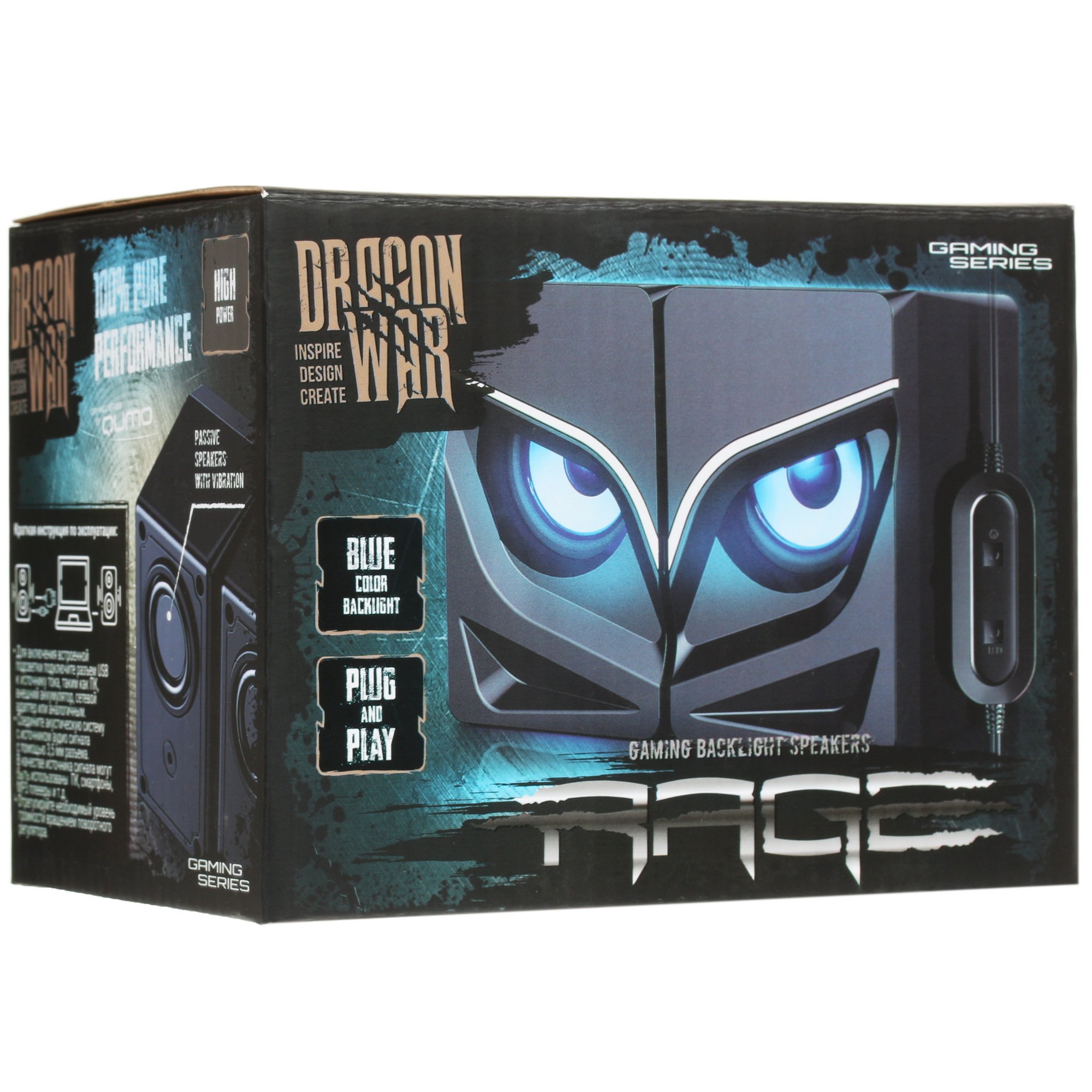 Колонки 2.0 Qumo Rage AS005 при небольших размерах обеспечат своему владельцу достойное аудиосопровождение. Эта игровая акустическая аудиосистема дополнена вибрацией и синей подсветкой, которую можно отключить при необходимости. Совокупная мощность устройства составляет 10 Вт, а диапазон рабочих частот варьируется от 100 до 20000 Гц. Питание колонки 2.0 Qumo Rage AS005 получают от компьютера или ноутбука за счет USB-порта. Стильный черный корпус акустической системы, дополненный синей подсветкой, смотрится очень креативно.