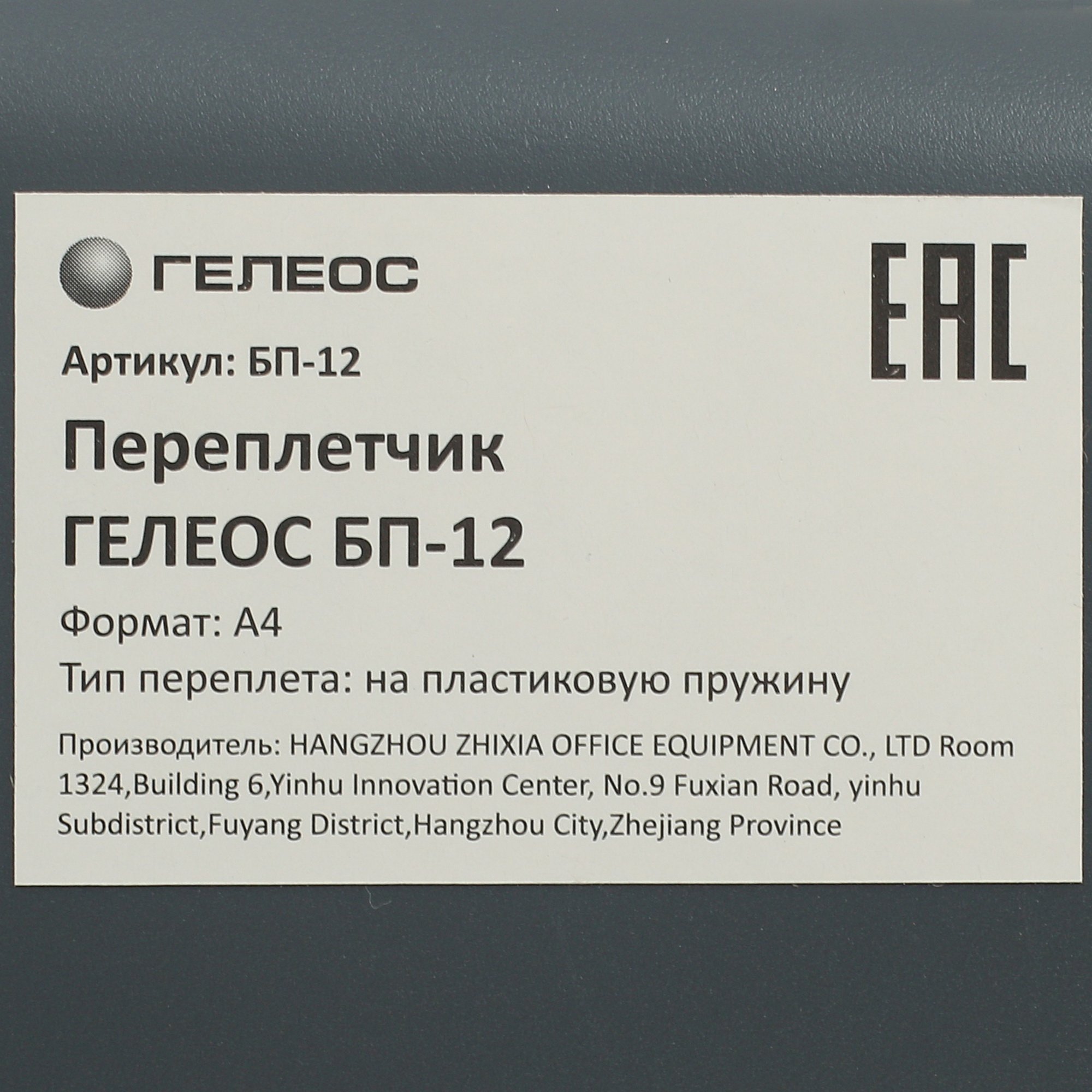Переплетчик ГЕЛЕОС БП-12 на пластиковую пружину, А4, ручная перфорация 12 листов, переплет макс до 500 л., глубина перфорации 3,5-5,5 мм