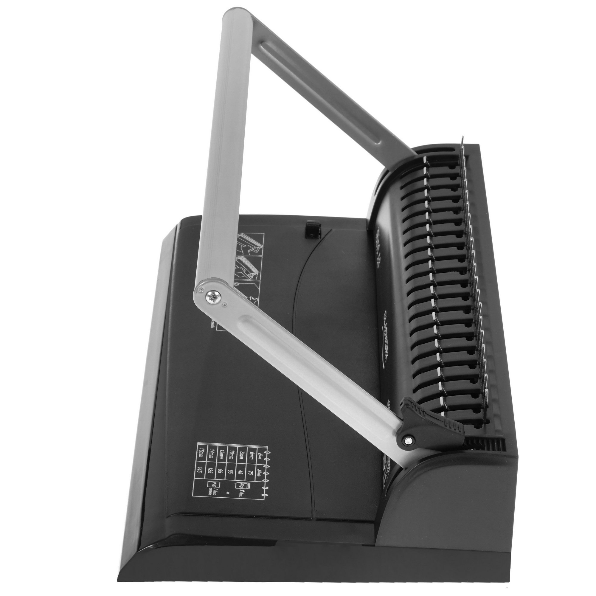 Брошюровщик Gladwork iBind A8 подходит для использования в небольшом офисе и дома. Благодаря специальной конструкции он делает линию с прямоугольными отверстиями для последующего переплета документов с помощью специальной пластиковой пружины. Брошюровщик отличается поддержкой одновременно до 8 перфорируемых листов формата А4 и пружин диаметром не более 16 мм. Лоток для сбора отходов помогает поддерживать порядок на столе. Широкая эргономичная рукоятка гарантирует комфорт в эксплуатации Gladwork iBind A8.