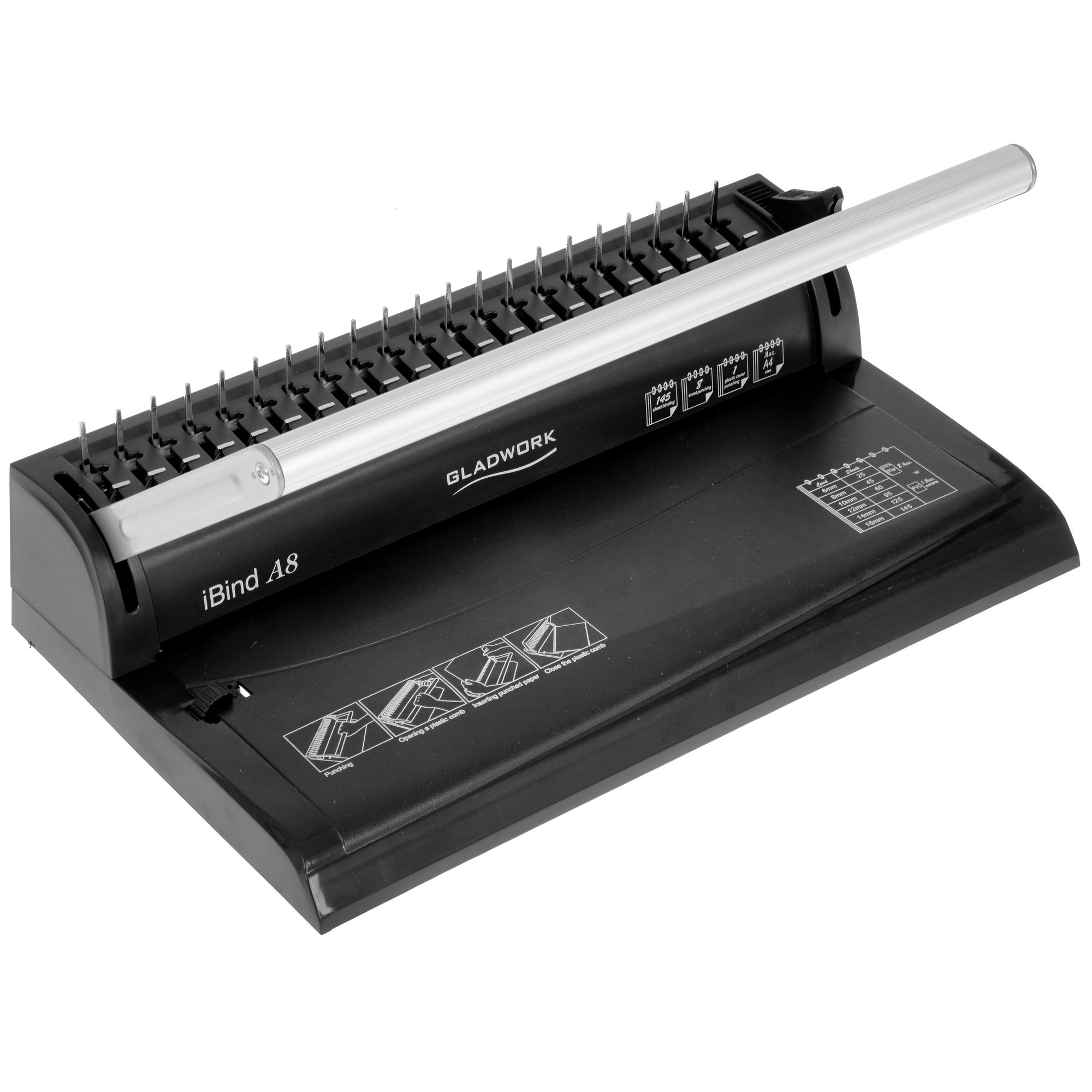 Переплетчик Gladwork iBind A8 A4/перф.8л.сшив./макс.145л./пластик.пруж. (6-16мм)
