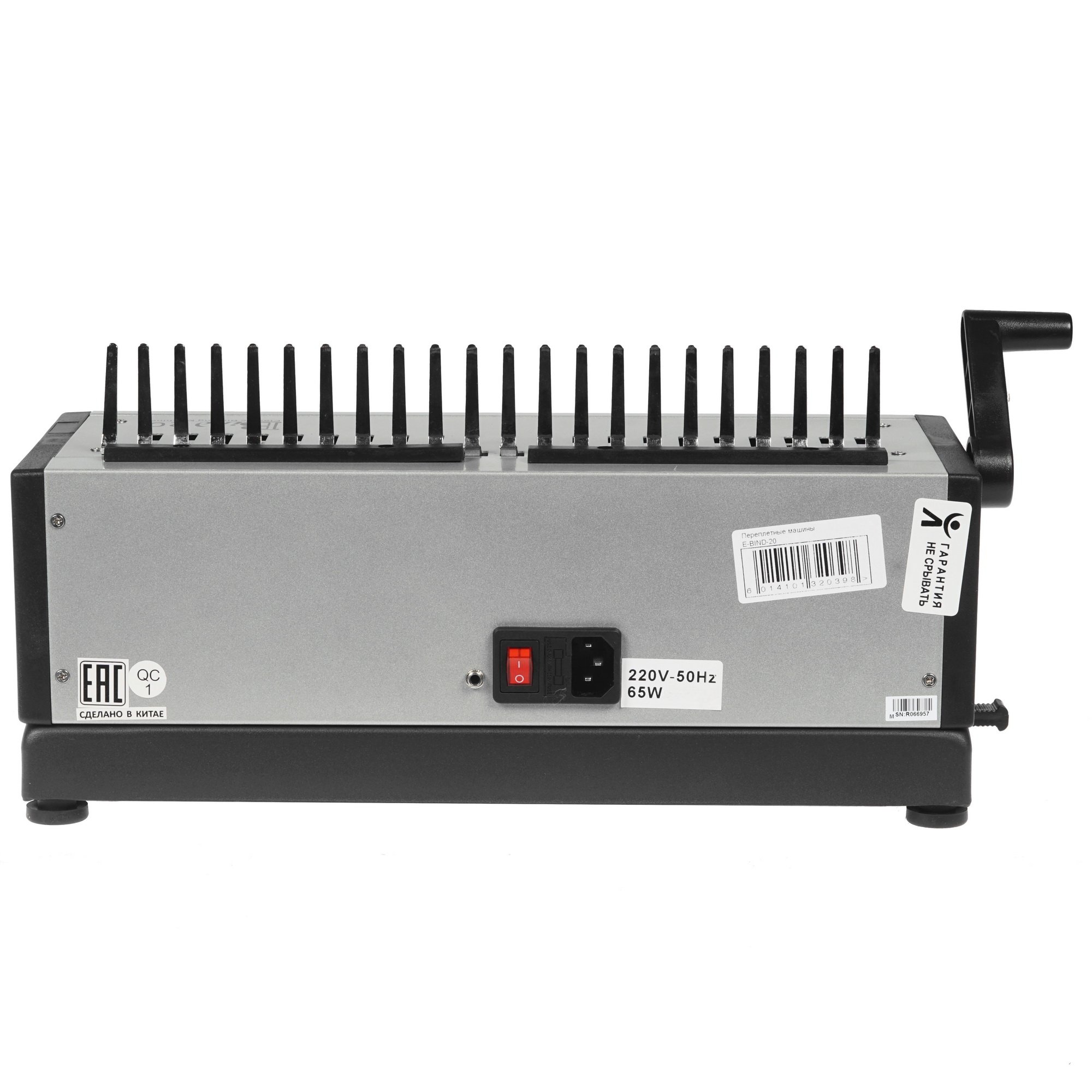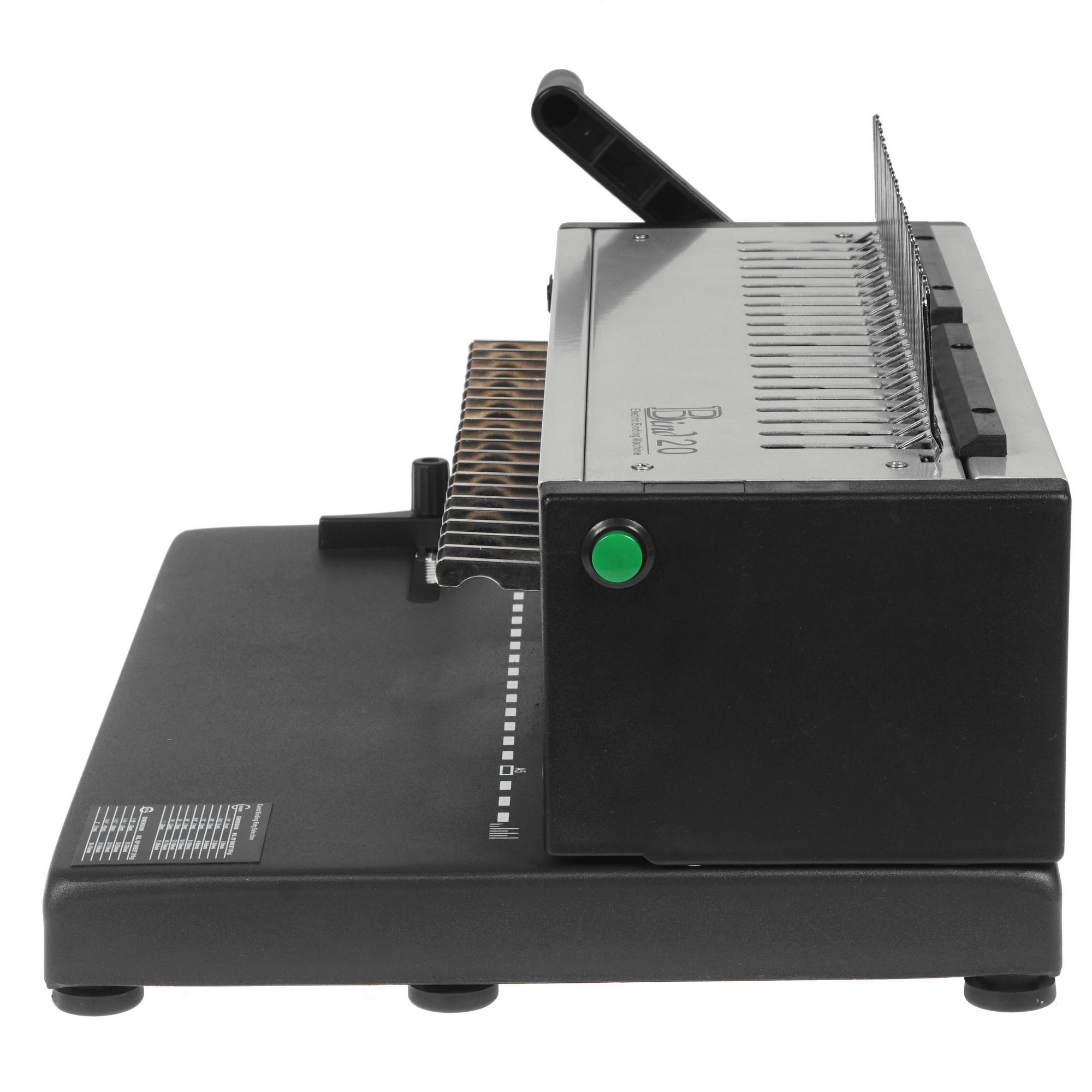Вместе с брошюровщиком можно использовать пружины, имеющие диаметр до 51 мм. Внутри устройства присутствует отдельный лоток для сбора отходов. Оборудование выполняет перфорацию с шагом 9:16. Ее глубину можно отрегулировать при работе с техникой. Среди особенностей прибора – контроль отступа от края листа.