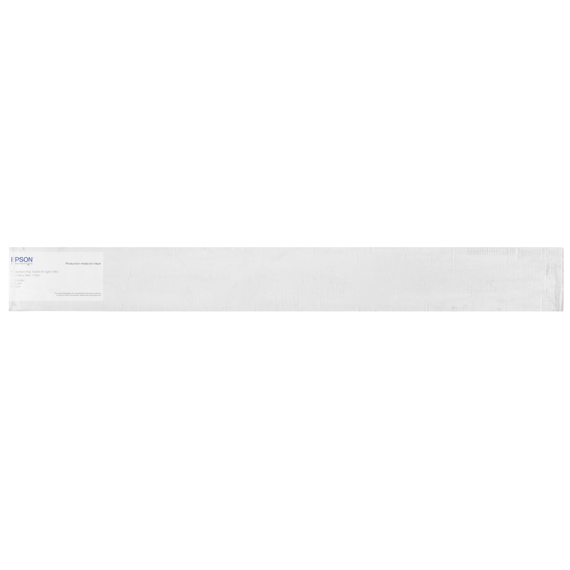 Особенность бумаги Epson Production Poly Textile B1 Light в поддержке огнестойкости B1, что позволяет ей служить до 5 лет при применении внутри помещения и до 1 года при наружном использовании. Снижение огнестойкости происходит при попадании на носитель воды. Благодаря матовому покрытию вы практически не будете видеть блики на поверхности. Плотность бумаги равна 180 г/м², а ее толщина составляет 180 мкм. Поставляется носитель в рулоне шириной 1067 мм, в котором длина бумаги соответствует 50 м.