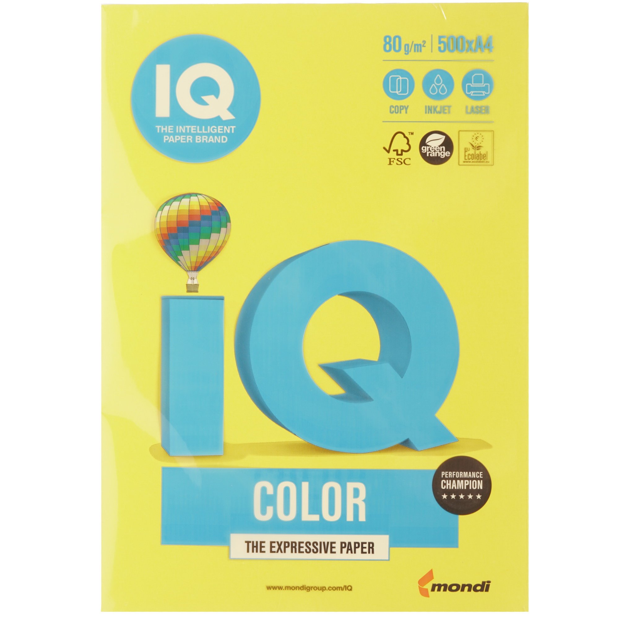 Бумага IQ IG50 офисная изготовлена в ярко-желтом цвете. На ней можно печатать рекламные листовки и проспекты на лазерном или струйном принтере. Формат каждого листа стандартный для офиса – A4. При необходимости после окончания печати его можно разрезать на несколько частей. Непрозрачность каждого листа составляет 94%, поэтому изделие не просвечивает. Отдельного внимания заслуживает высокий уровень экологичности изделия. В пачке бумаги IQ IG50 500 листов, поэтому ее хватит надолго даже при частом использовании.