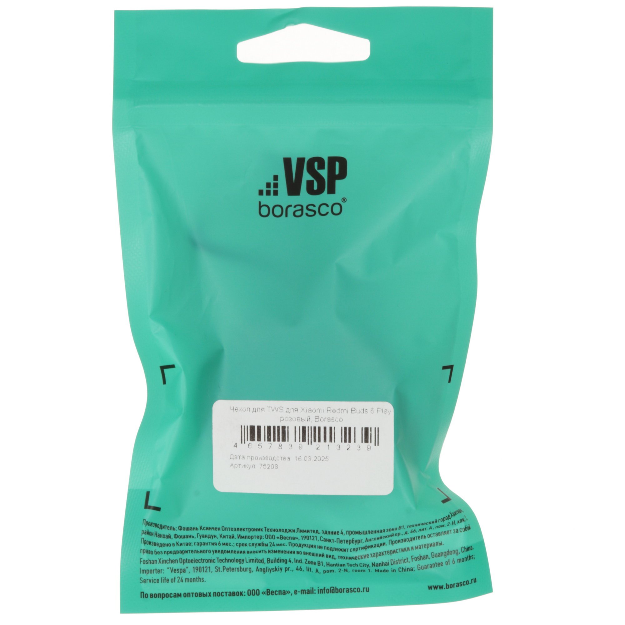 Розовый чехол Borasco совместим с наушниками TWS Xiaomi Redmi Buds 6 Play. Аксессуар плотно облегает кейс и не дает ему выпадать. Чехол защищает станцию-футляр от царапин и прочих повреждений, не дает пыли и брызгам попадать внутрь.