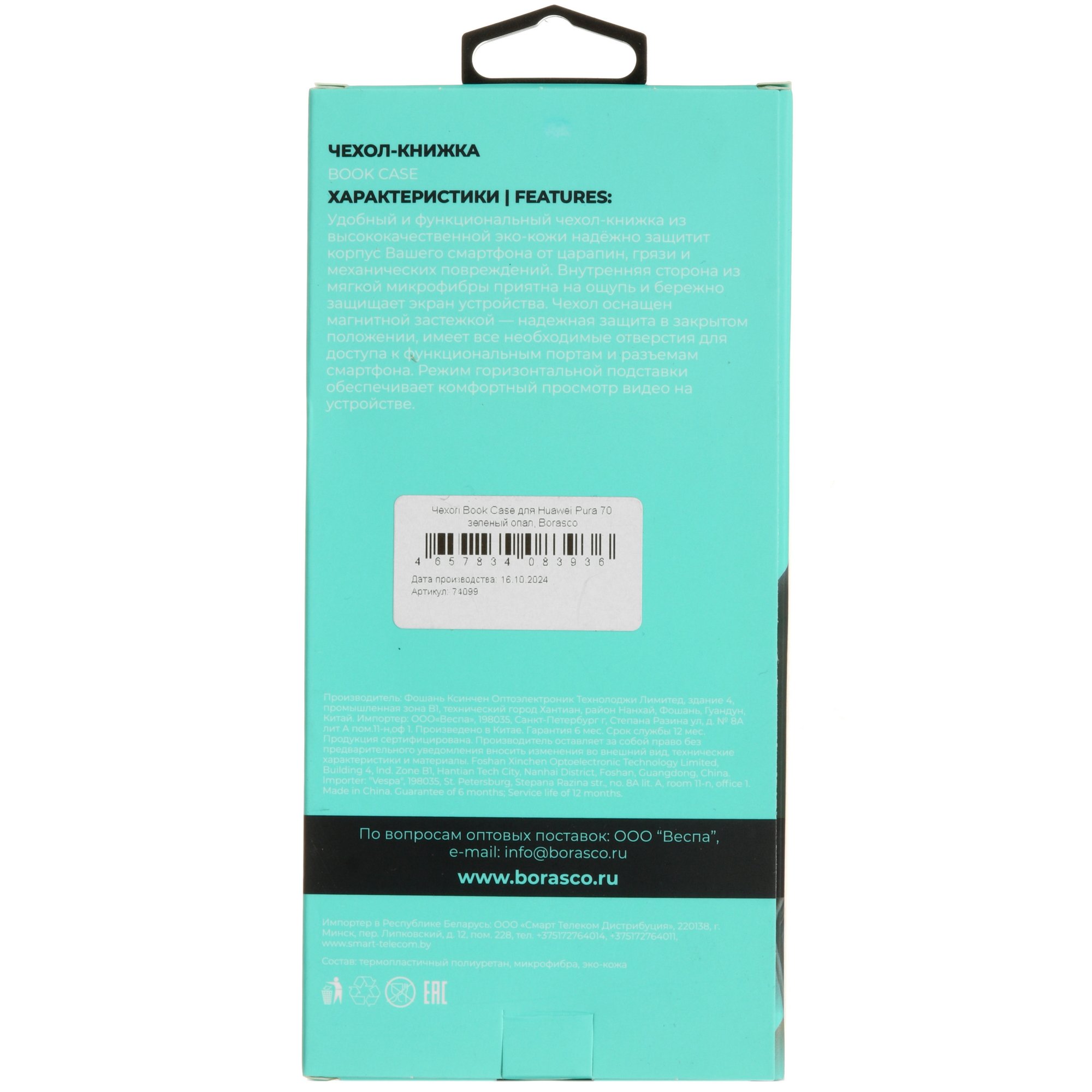 Чехол-книжка BoraSCO разработан для смартфона HUAWEI Pura 70. Аксессуар зеленого цвета состоит из основной части, в которую вставляется устройство, и крышки. Мягкая микрофибра на внутренней стороне крышки защищает экран от царапин, обеспечивая бережный контакт. Сам чехол сделан из ТПУ и ПУ, поэтому он прочный и гибкий, смягчает удары при падении устройства. Сверху аксессуар покрыт искусственной кожей, что делает его приятным на ощупь и внешне привлекательным.
