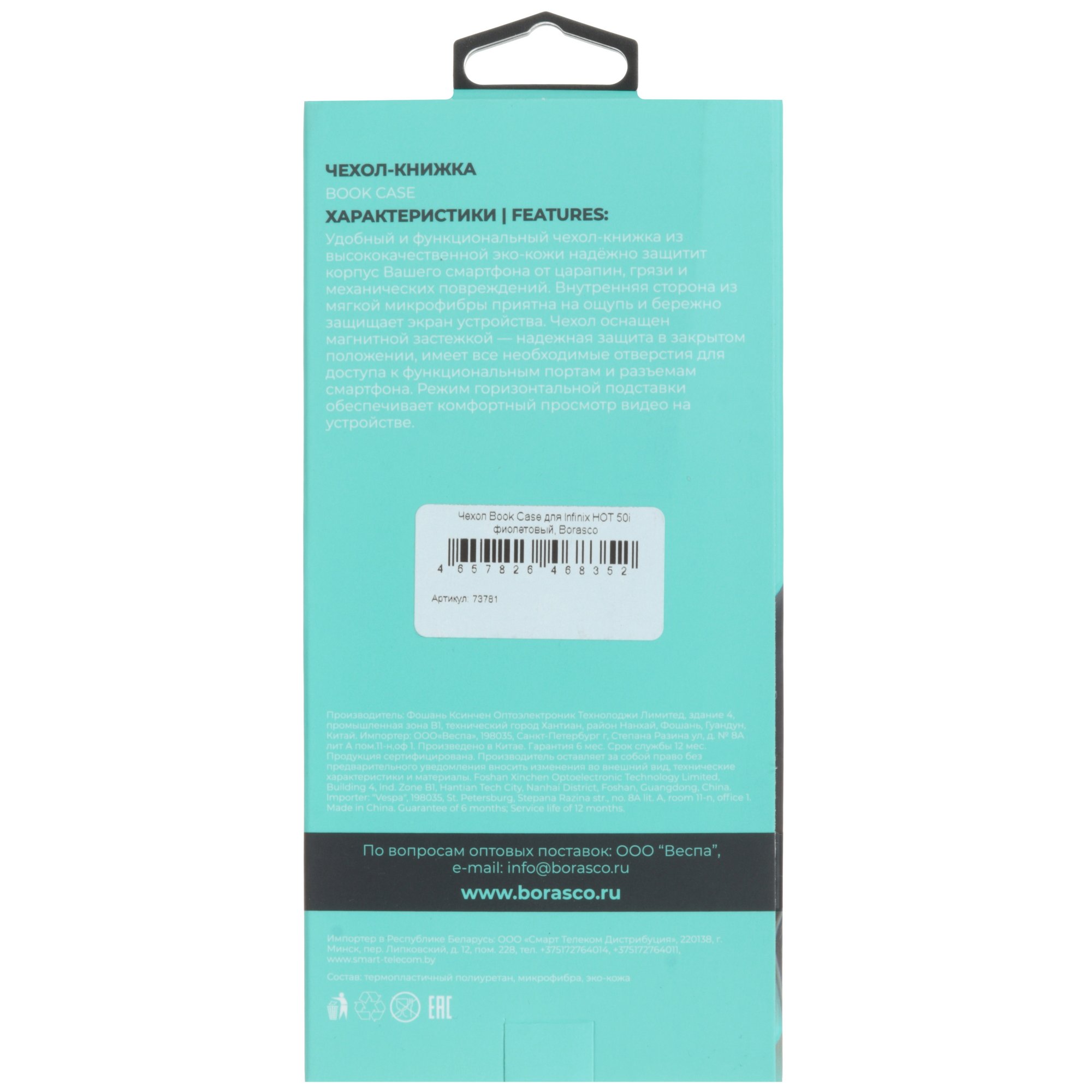 С внутренней стороны расположены карманы для пластиковых карт. Складная задняя крышка предусматривает трансформацию в подставку и обеспечивает комфорт при просмотре мультимедийного контента. Магнитная застежка удерживает чехол BoraSCO Book Case в закрытом положении.