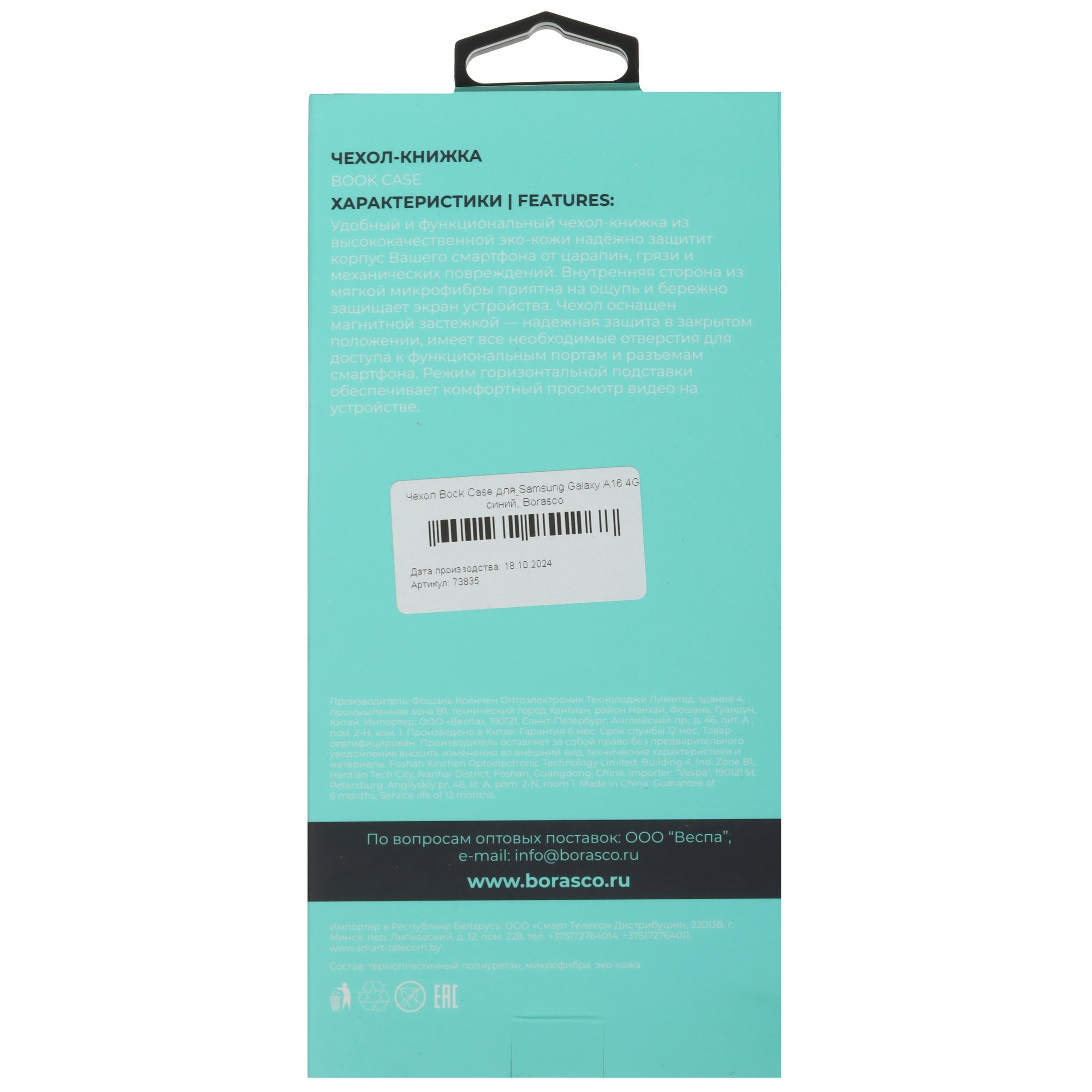 Чехол-книжка BoraSCO защищает от царапин и сколов корпус Samsung Galaxy A16. Аксессуар синего цвета имеет вид книжки. Основная часть, в которую вставляется устройство, дополнена крышкой для защиты экрана. Внутри она покрыта мягкой микрофиброй, поэтому бережно прилегает к дисплею и защищает его от потертостей.