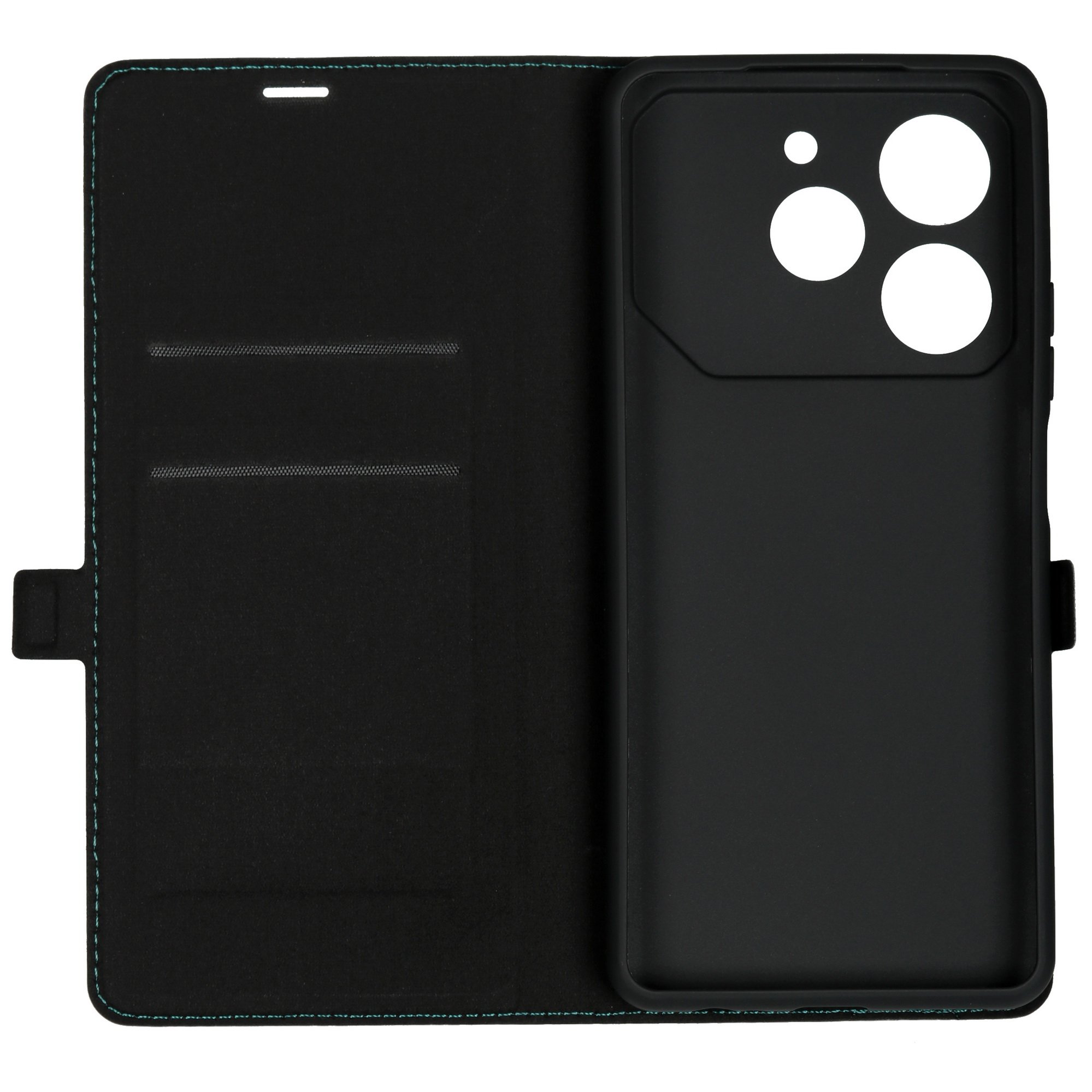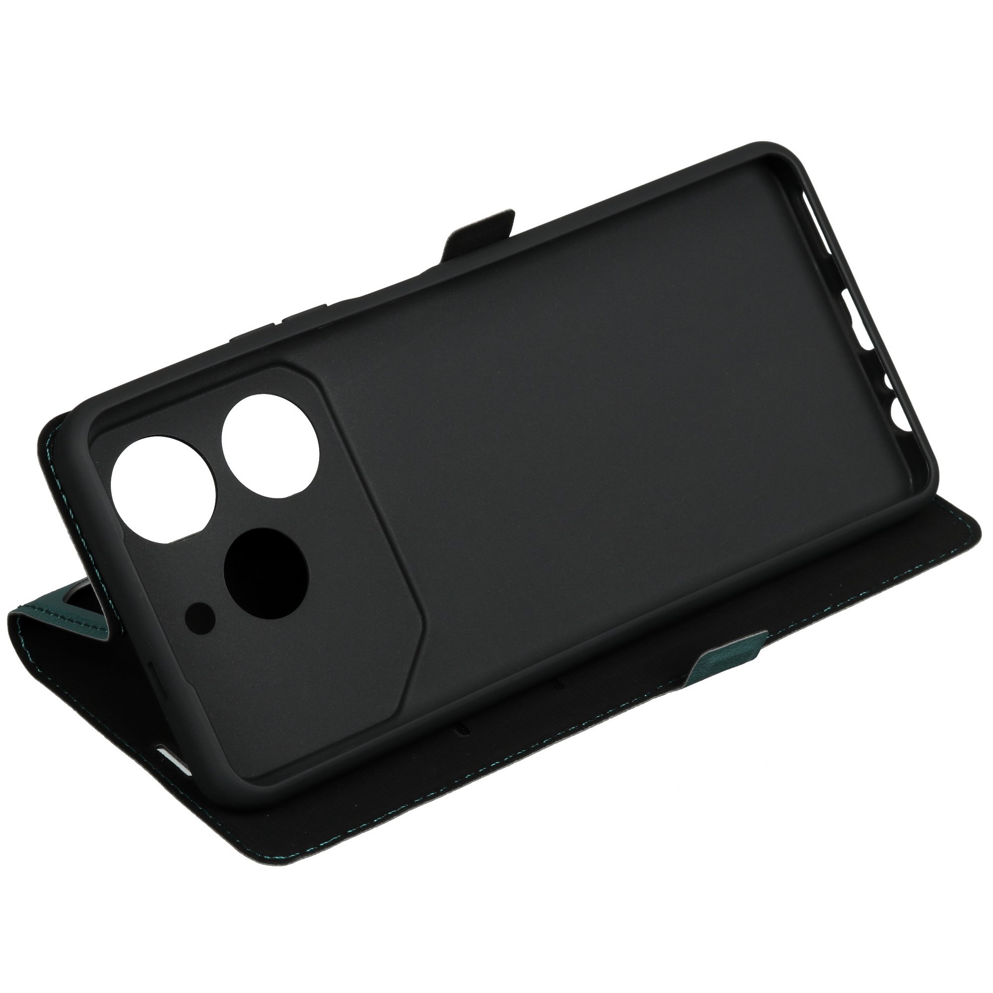 Чехол-книжка BoraSCO выполнен в зеленом цвете и предназначен для защиты Tecno POVA 6 Neo. На внешней стороне чехла выполнено окошко для камеры. На боковых сторонах есть вырезы и выступы для разъемов и кнопок. Это сохраняет функциональность смартфона.