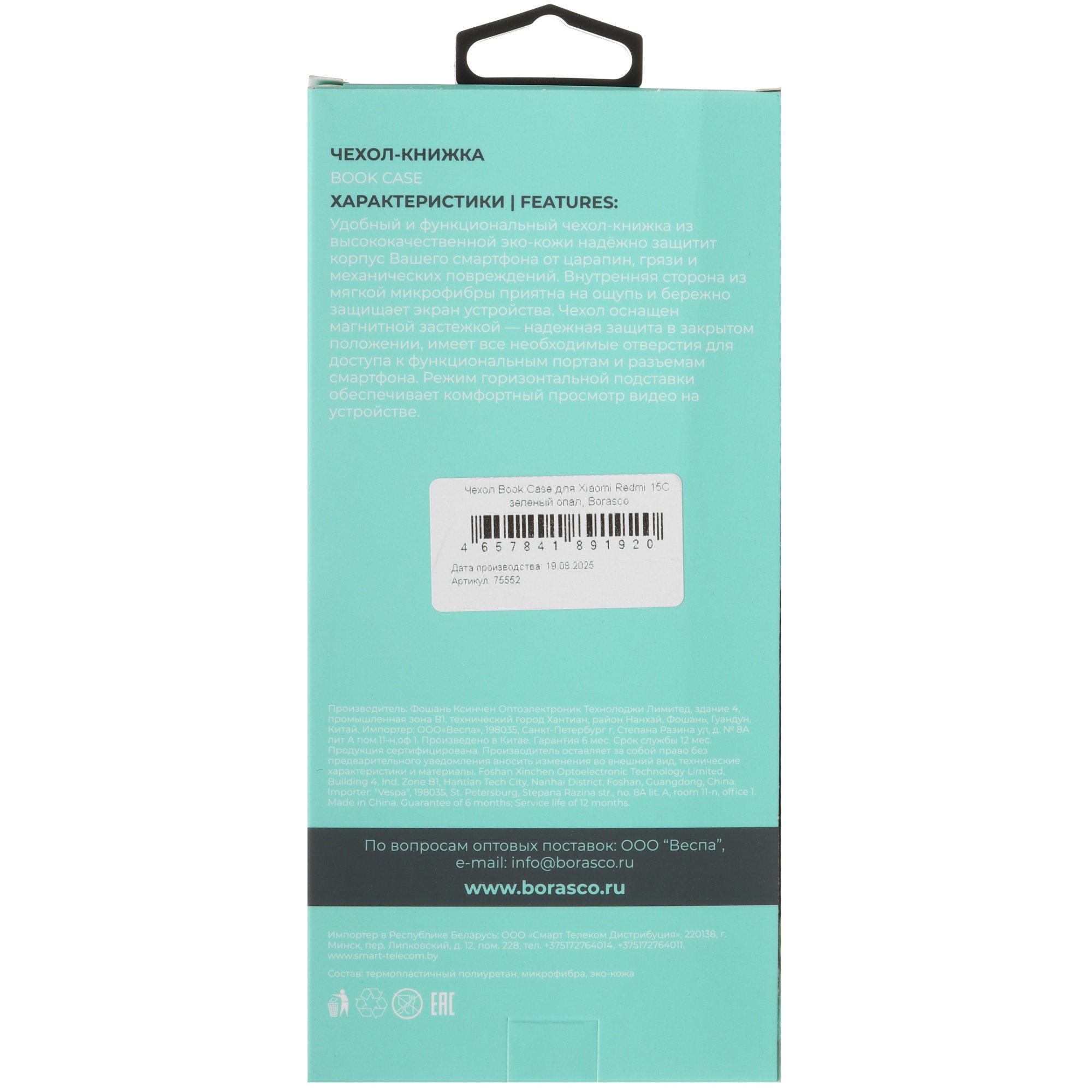 Чехол BoraSCO Book Case зеленого цвета оснащен вырезами в соответствии с особенностями смартфона. Для комфортного просмотра мультимедиа конструкция крышки предусматривает трансформацию в подставку. Внутри есть карманы для пластиковых карт. Благодаря застежке на магните чехол удерживается в закрытом положении.