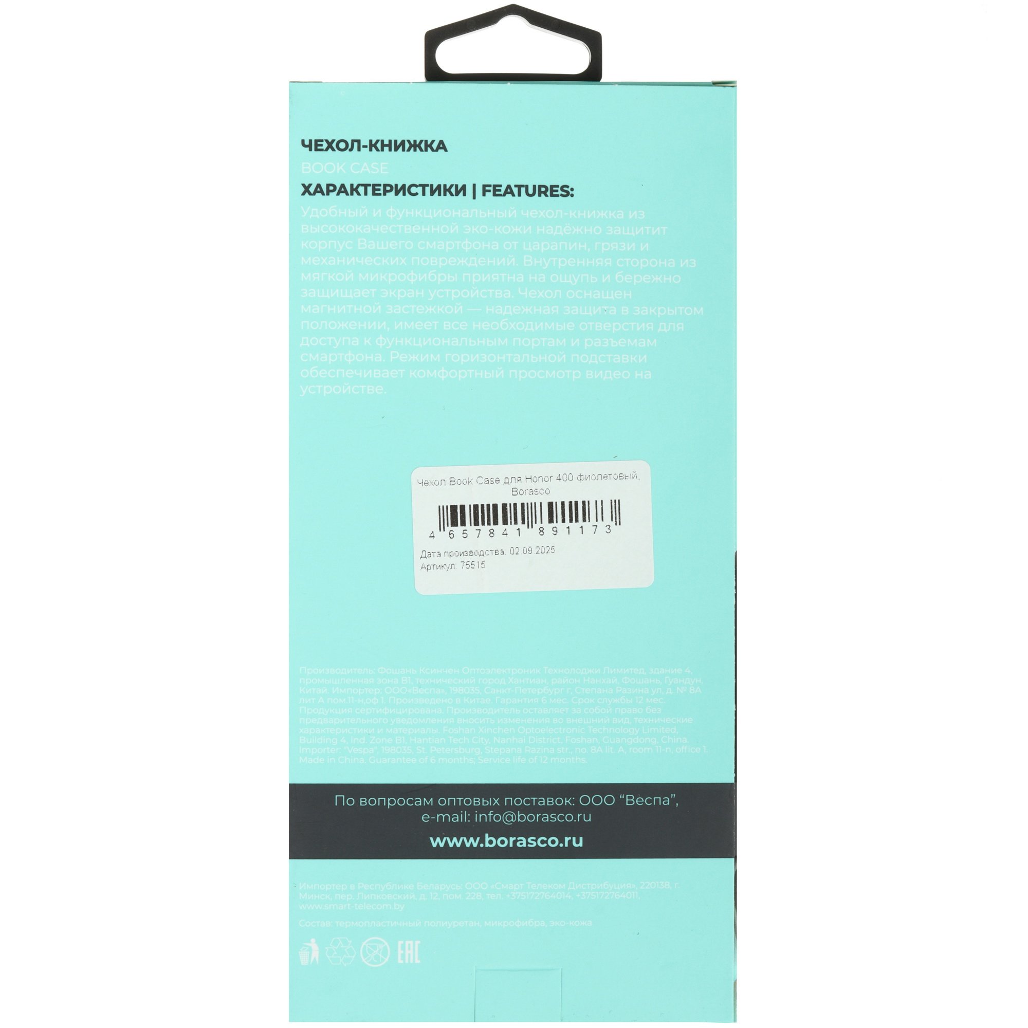 Чехол-книжка BoraSCO для HONOR 400 обеспечивает полноценную защиту дисплея, корпуса и боковых граней смартфона от повреждений и загрязнений. Прочный внутренний каркас из термополиуретана обладает амортизационными свойствами и способен сохранять целостность устройства при падениях. Внутреннее мягкое покрытие препятствует появлению царапин.