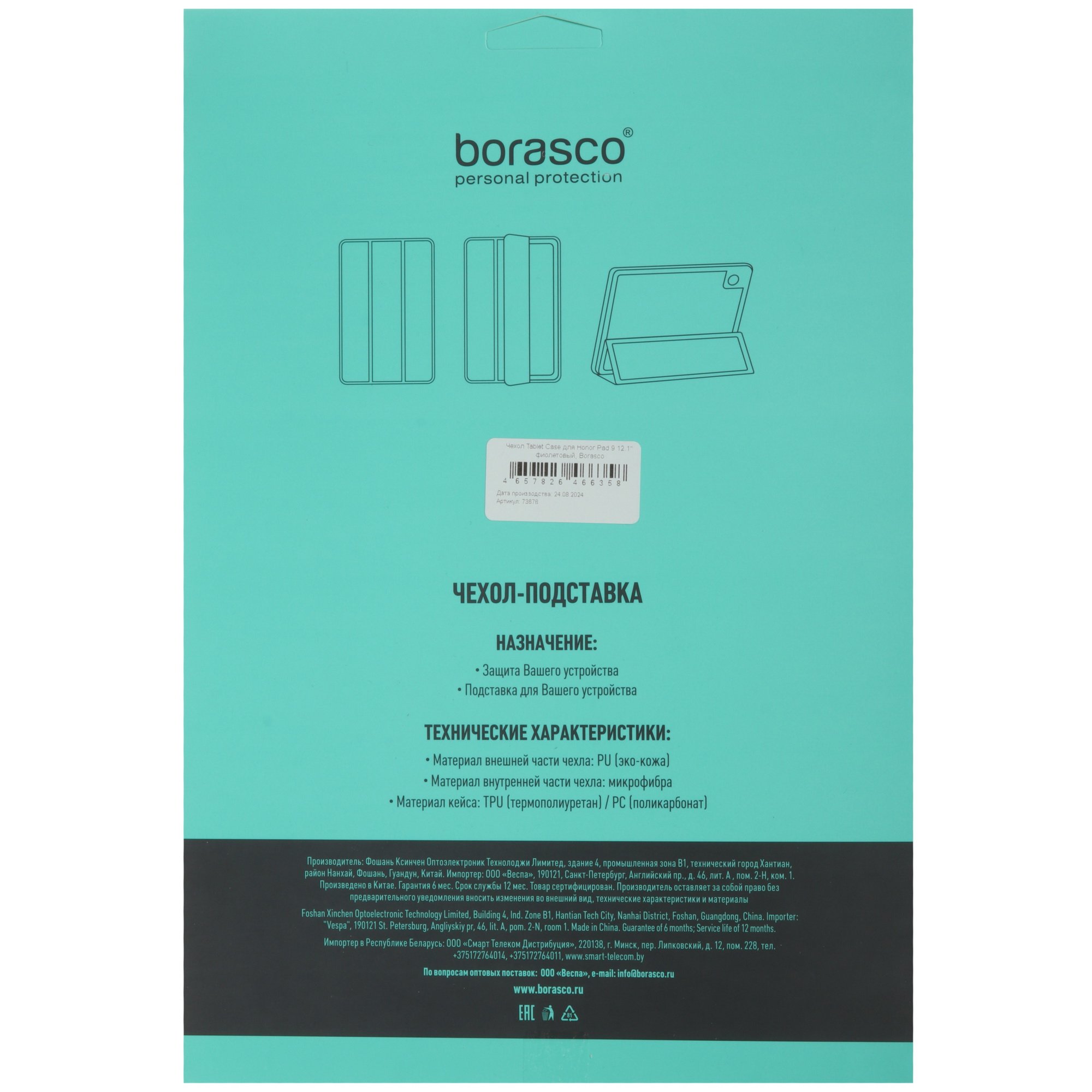 При закрытии чехла-книжки BoraSCO экран автоматически блокируется и планшет переходит в спящий режим. Благодаря трансформируемой конструкции передней крышки с магнитами она складывается в подставку. Это обеспечивает устойчивость планшета и комфортный просмотр контента на экране.