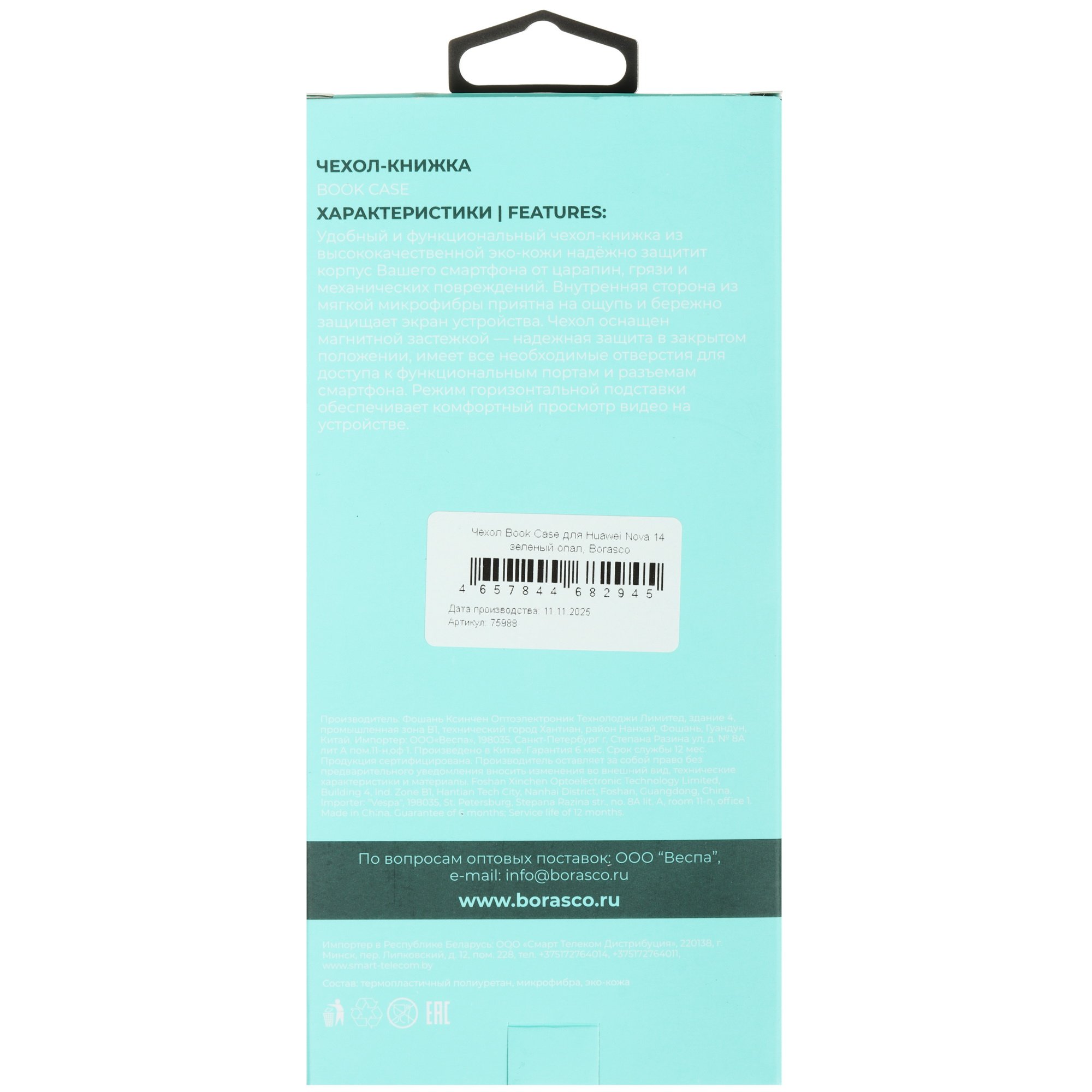 Зеленый чехол-книжка BoraSCO для HUAWEI nova 14 выполнен из устойчивой к износу и простой в уходе искусственной кожи. Изделие закрывает устройство со всех сторон вместе с углами и боковыми гранями. При этом сохранен доступ к основной камере и разъемам.