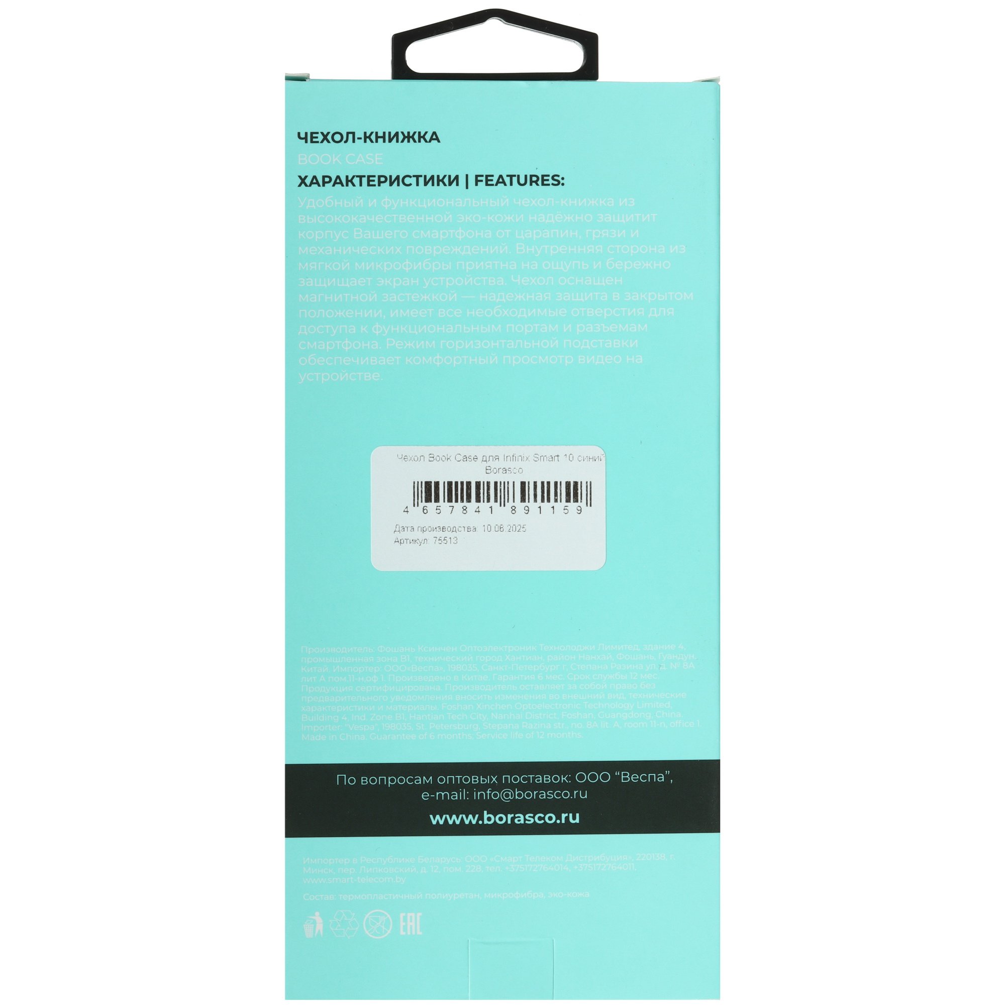 Чехол-книжка BoraSCO для Infinix SMART 10 с диагональю 6.67 дюйма представлен в синем цвете. Аксессуар изготовлен из полиуретана с амортизационными свойствами и искусственной кожи. Чехол защищает смартфон от механических повреждений при ударах и падениях, потертостей и загрязнений со всех сторон. Мягкая подкладка из микрофибры уберегает экран от появления царапин и сколов. В конструкции чехла есть отверстия под объективы камеры, микрофон, динамик и разъемы.