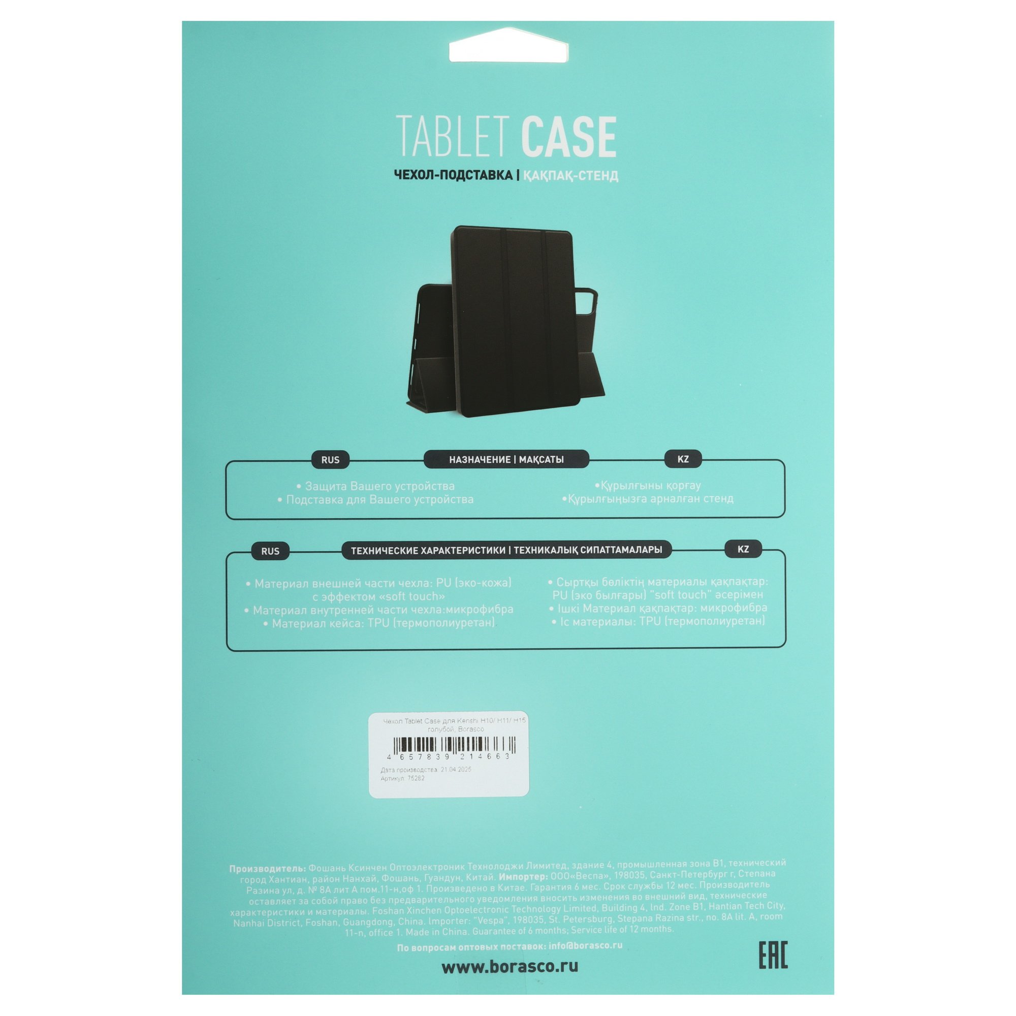 Чехол-книжка BoraSCO для KENSHI H10/ H11/ Pad H15 изготовлен из ТПУ и ПУ. Аксессуар подходит для использования в качестве подставки.