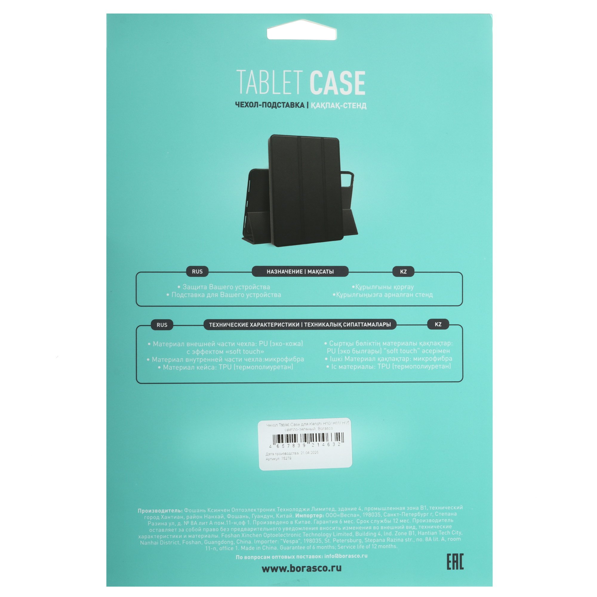 Чехол-книжка BoraSCO для KENSHI H10/ H11/ Pad H15 зеленый совместим с планшетами KENSHI H10, KENSHI H11 и KENSHI Pad H15. Аксессуар обеспечивает защиту экрана и корпуса устройства от загрязнений и механических воздействий.