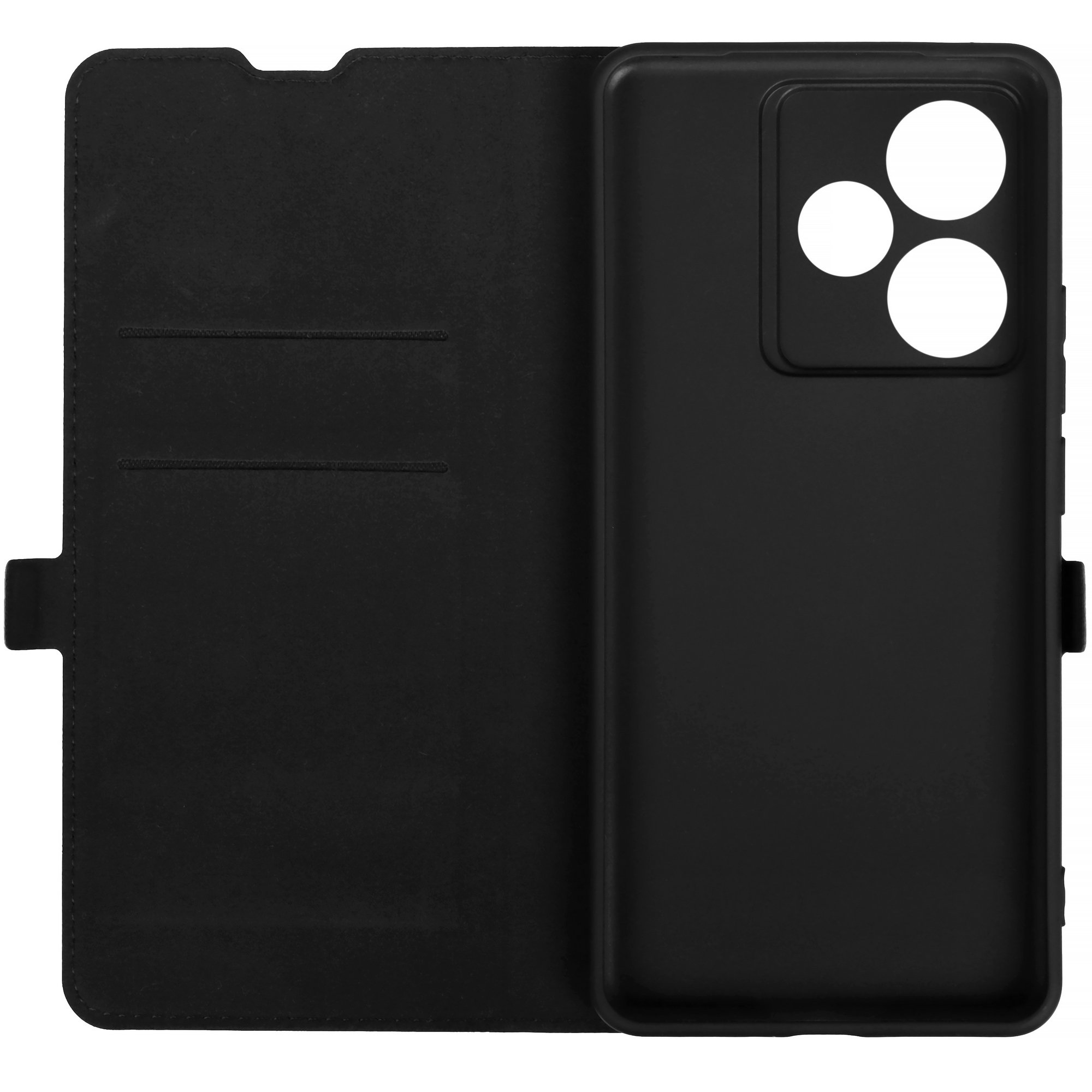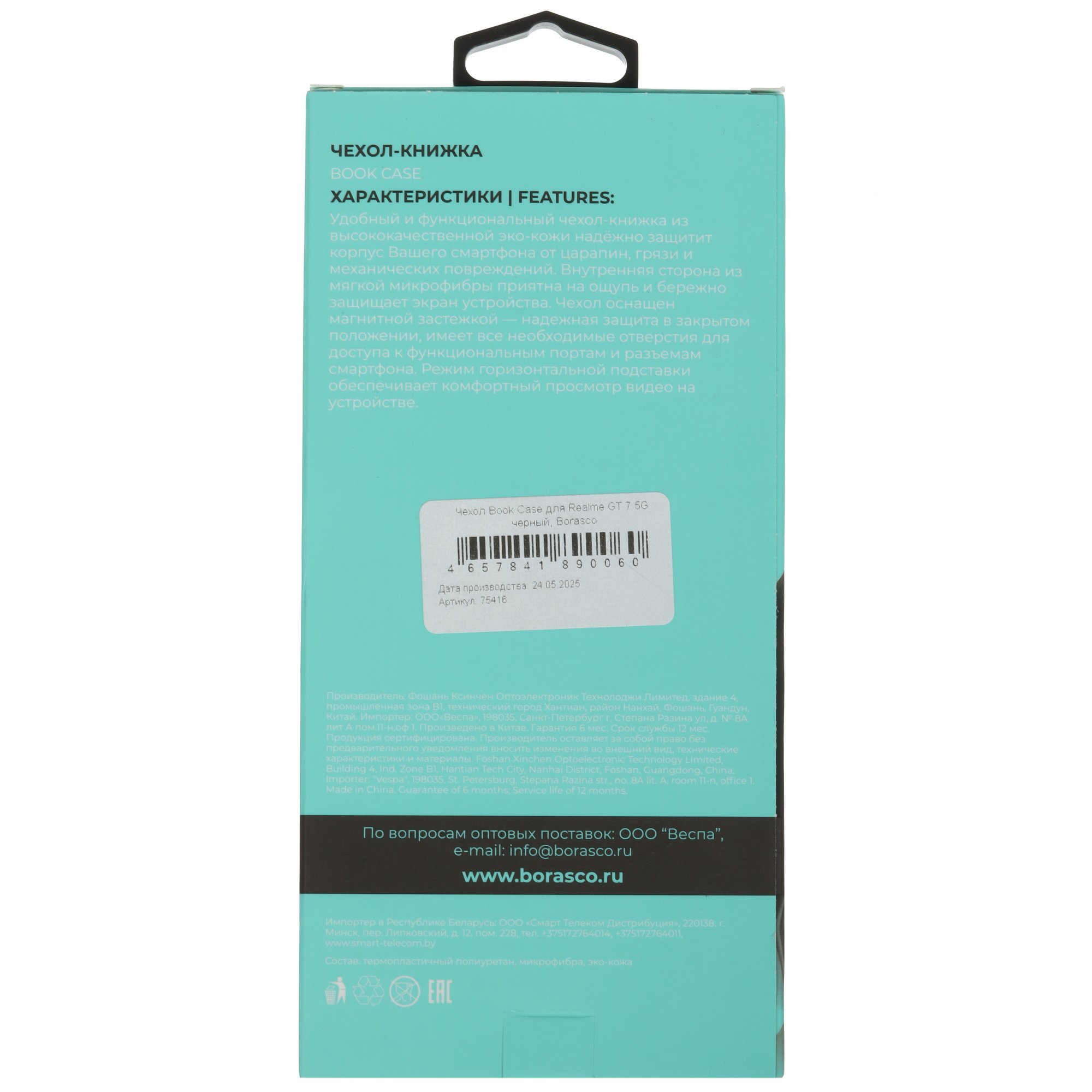 Черный чехол-книжка BoraSCO для realme GT 7 защищает обе стороны смартфона от повреждений при несильных падениях и попадания на поверхность пыли или загрязнений. Чехол подходит для смартфонов модели GT 7 от бренда realme.