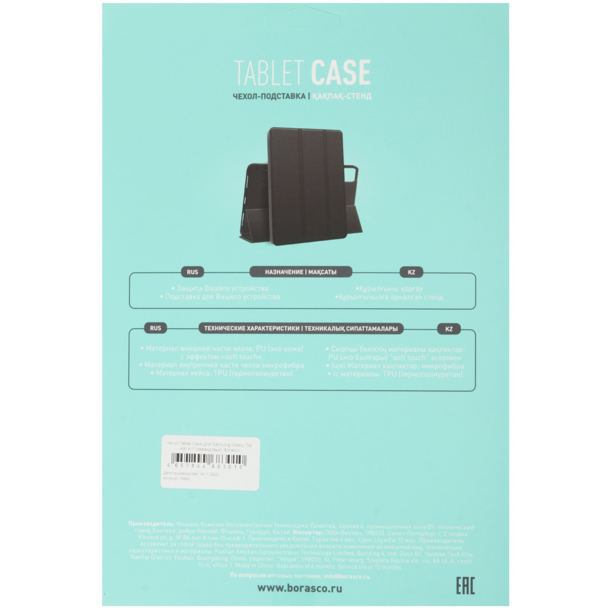 BoraSCO для Samsung Galaxy Tab A9/ A11 оставляет доступ к основной камере и разъемам. В закрытом виде чехол защищает экран планшета от царапин и сколов при ношении в сумке вместе с ключами и другими вещами, случайном падении или ударе. Аксессуар дополнен приятным на ощупь и простым в уходе покрытием Soft Touch.