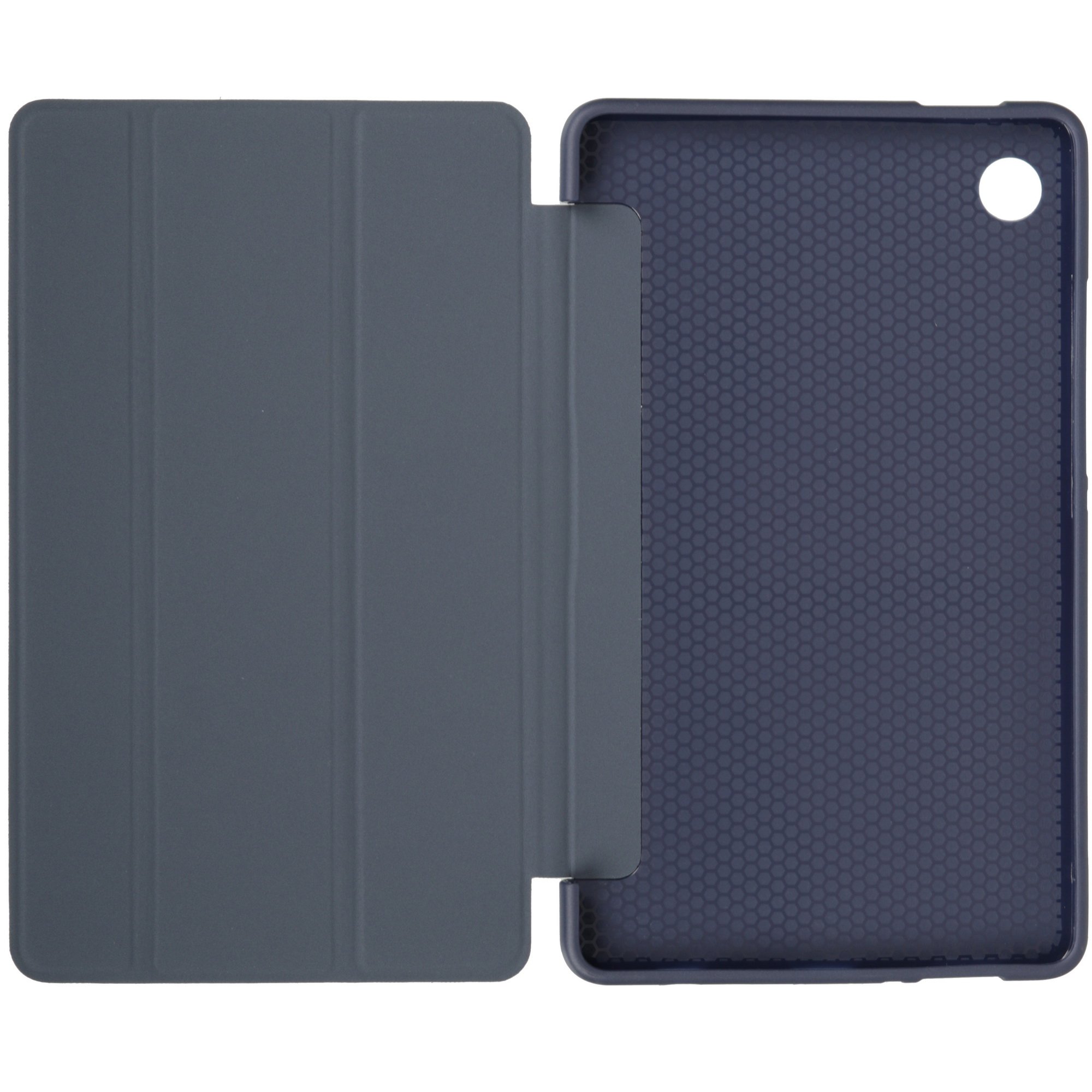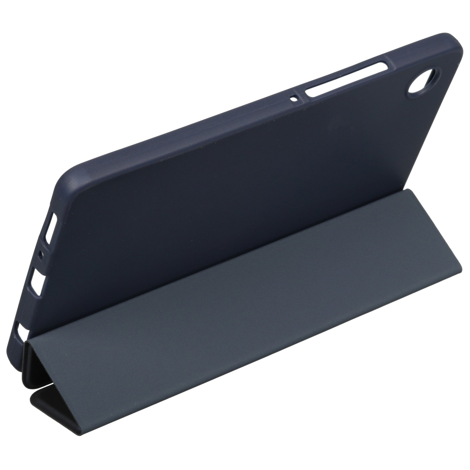 Синий чехол-книжка BoraSCO для Samsung Galaxy Tab A9/ A11 выполнен из простой в уходе и устойчивой к износу искусственной кожи. Аксессуар закрывает устройство со всех сторон вместе с углами, боковыми гранями и дисплеем. Чехол выполнен без застежки.