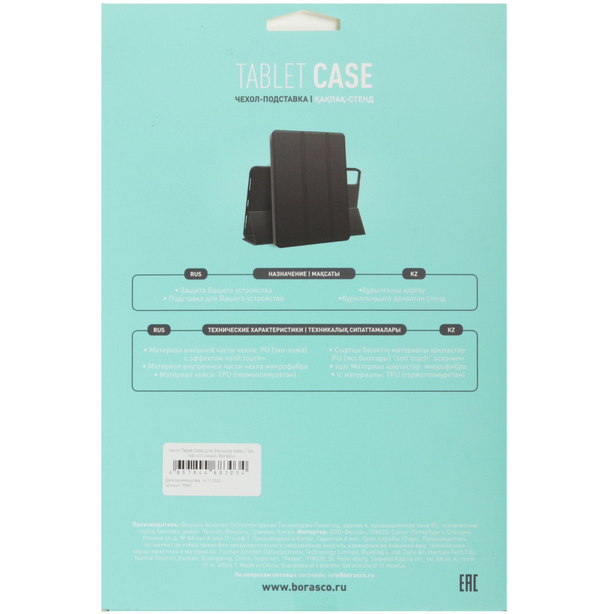 BoraSCO для Samsung Galaxy Tab A9/ A11 оставляет доступ к основной камере и разъемам. В закрытом виде чехол защищает экран планшета от царапин и сколов при ношении в сумке вместе с ключами и другими вещами, случайном падении или ударе. Аксессуар дополнен приятным на ощупь и простым в уходе покрытием Soft Touch.