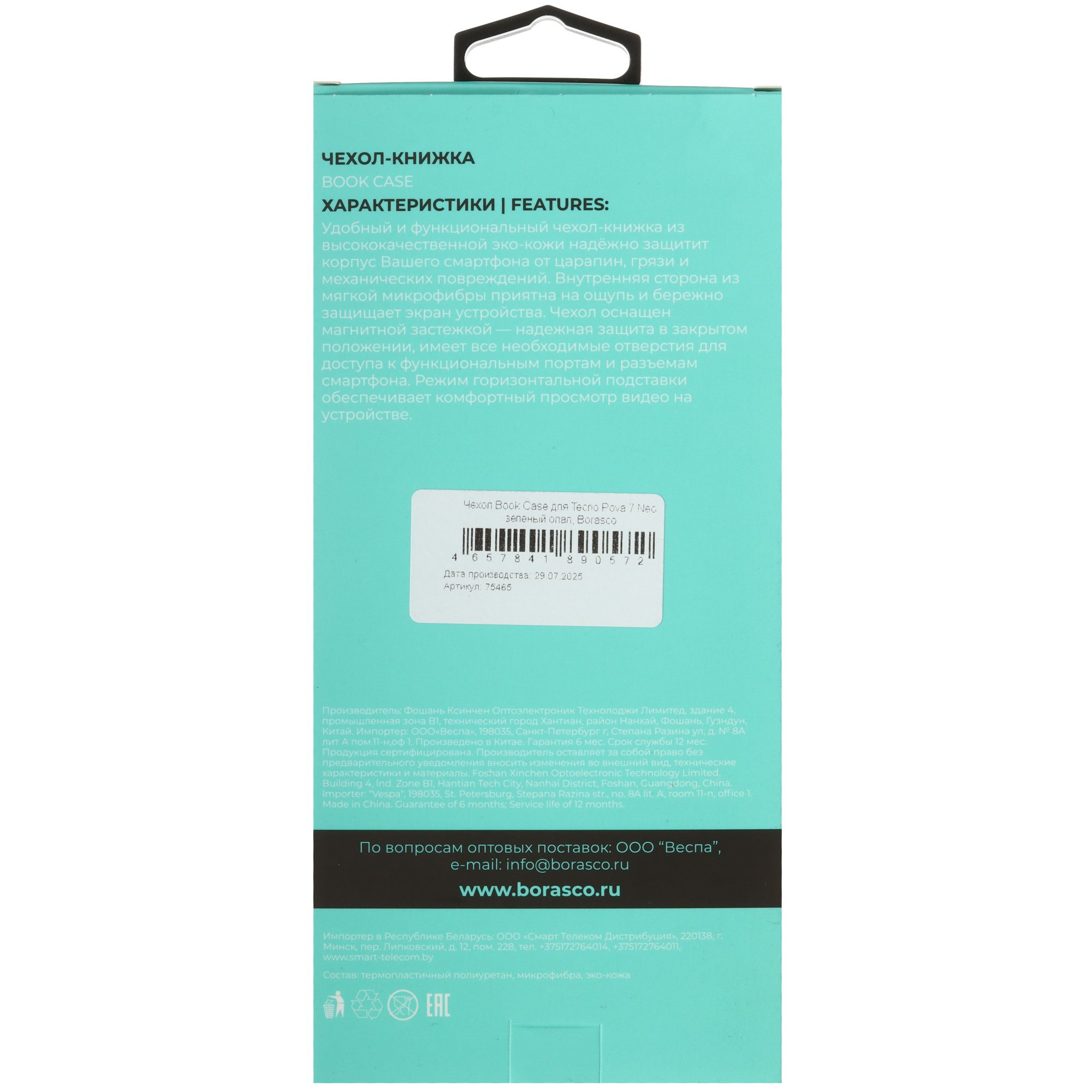 На внутренней стороне расположены карманы для пластиковых карт и визиток. Складная задняя крышка трансформируется в подставку и делает комфортным просмотр мультимедийного контента. Магнитная застежка прочно удерживает чехол BoraSCO в закрытом положении и исключает случайное открывание.