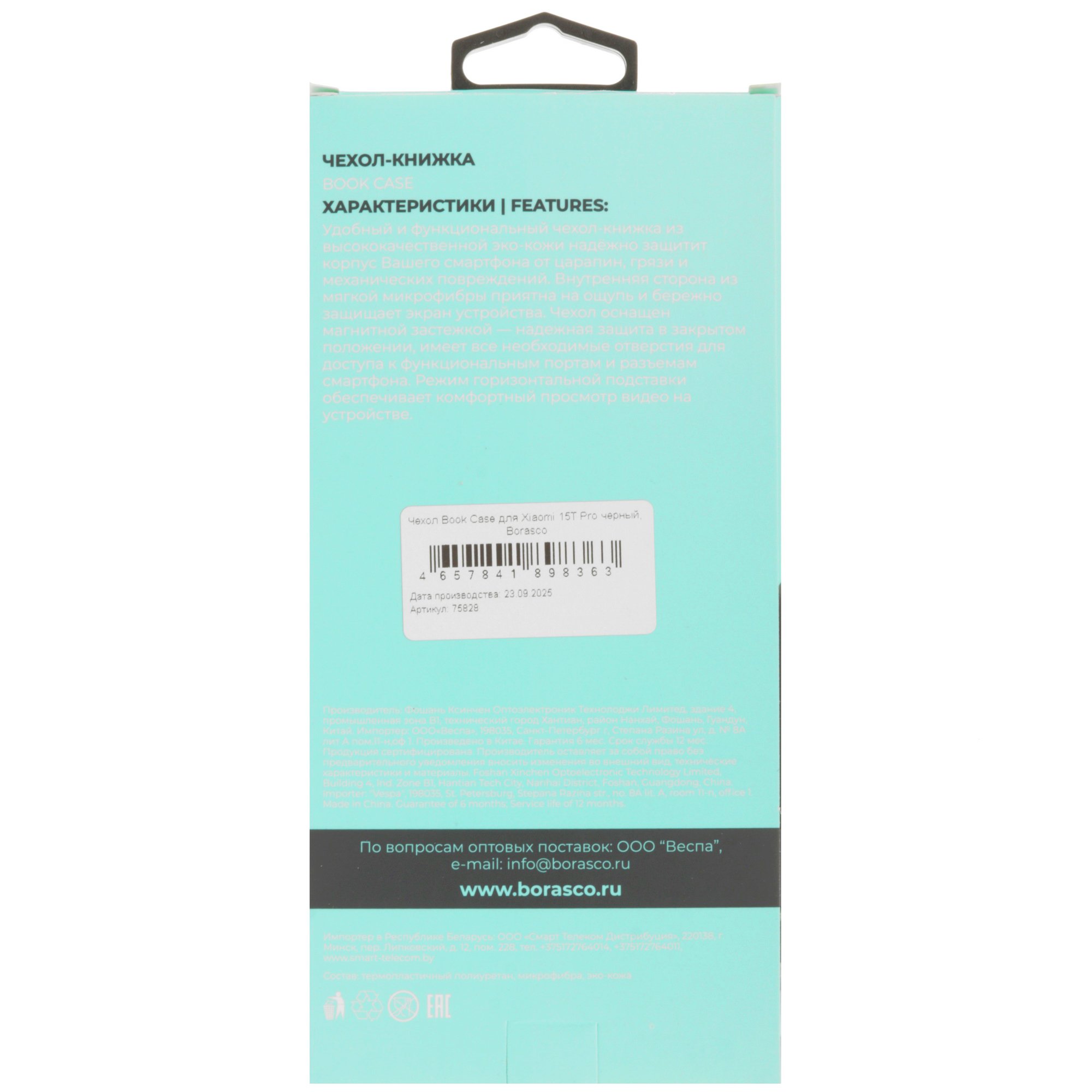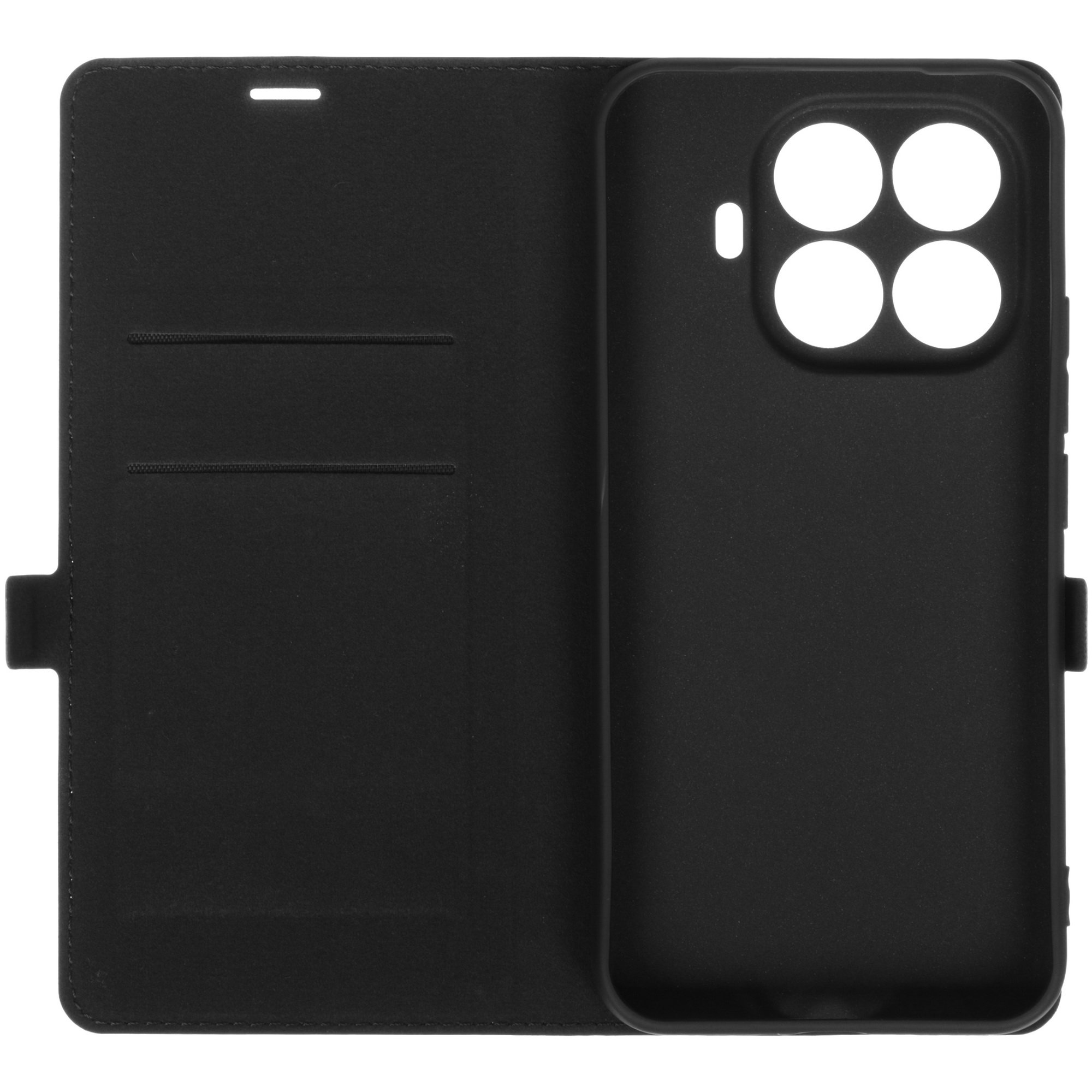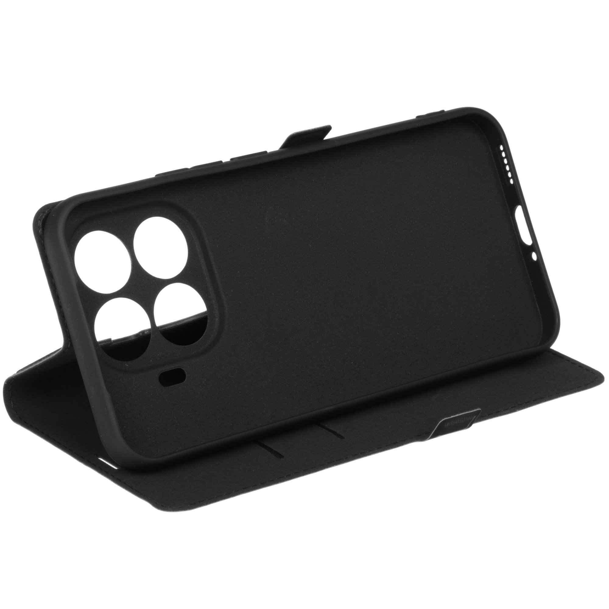 Черный чехол-книжка BoraSCO для Xiaomi 15T Pro защищает устройство от случайных повреждений, попадания брызг и пыли. Аксессуар закрывает корпус вместе с боковыми гранями и углами, при этом оставляет доступ к разъемам и основной камере. В закрытом виде чехол-книжка не дает дисплею царапаться.