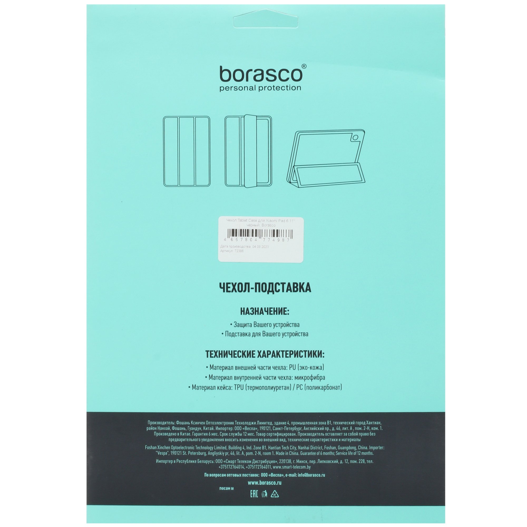 BoraSCO защищает планшет от повреждений и загрязнений, смягчает удары при падении. Дизайн в виде книжки не позволяет нажимать щекой на дисплей во время телефонного разговора. Аксессуар дополнен магнитной застежкой с автоблокировкой при закрытии и функцией подставки.