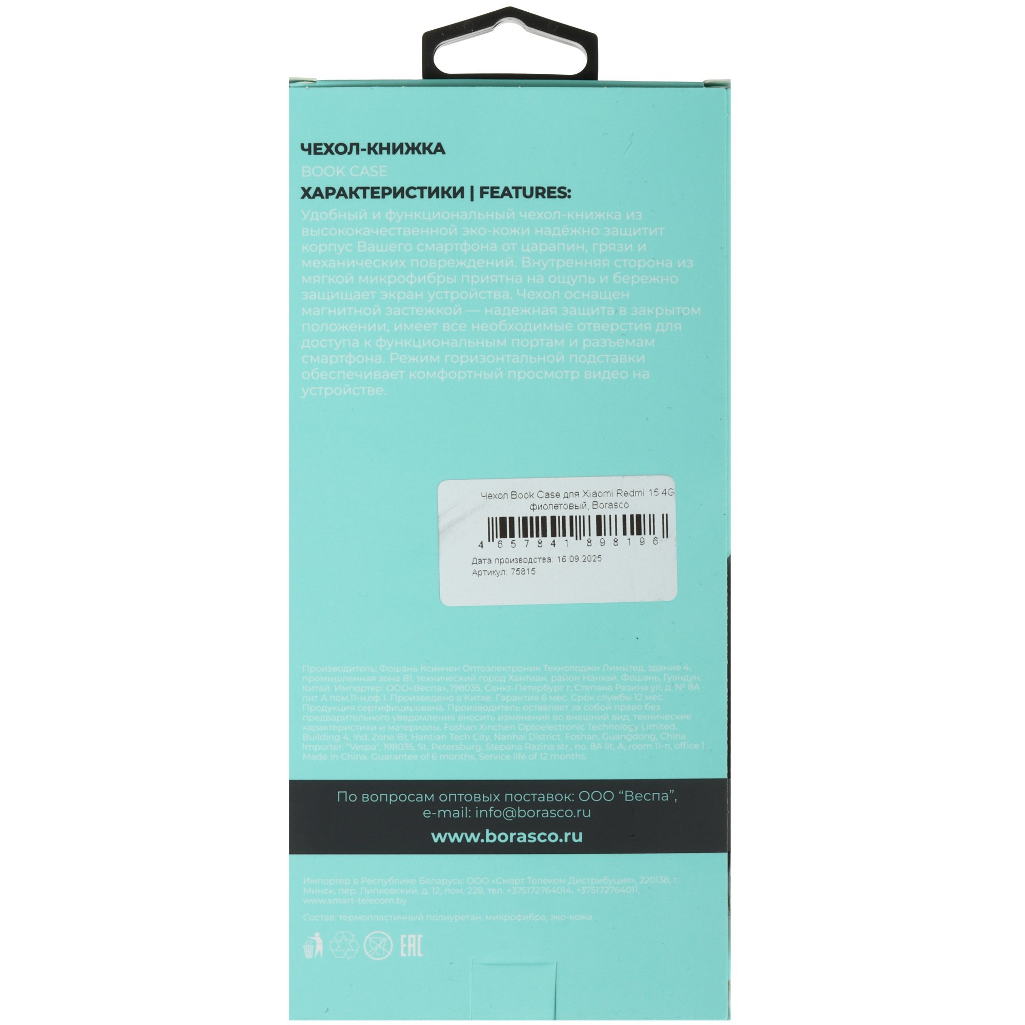 Фиолетовый чехол-книжка BoraSCO для Xiaomi REDMI 15 5G защищает устройство от случайных повреждений, попадания брызг и пыли. Аксессуар закрывает корпус вместе с боковыми гранями и углами, при этом оставляет доступ к разъемам и основной камере. В закрытом виде чехол-книжка не дает дисплею царапаться.