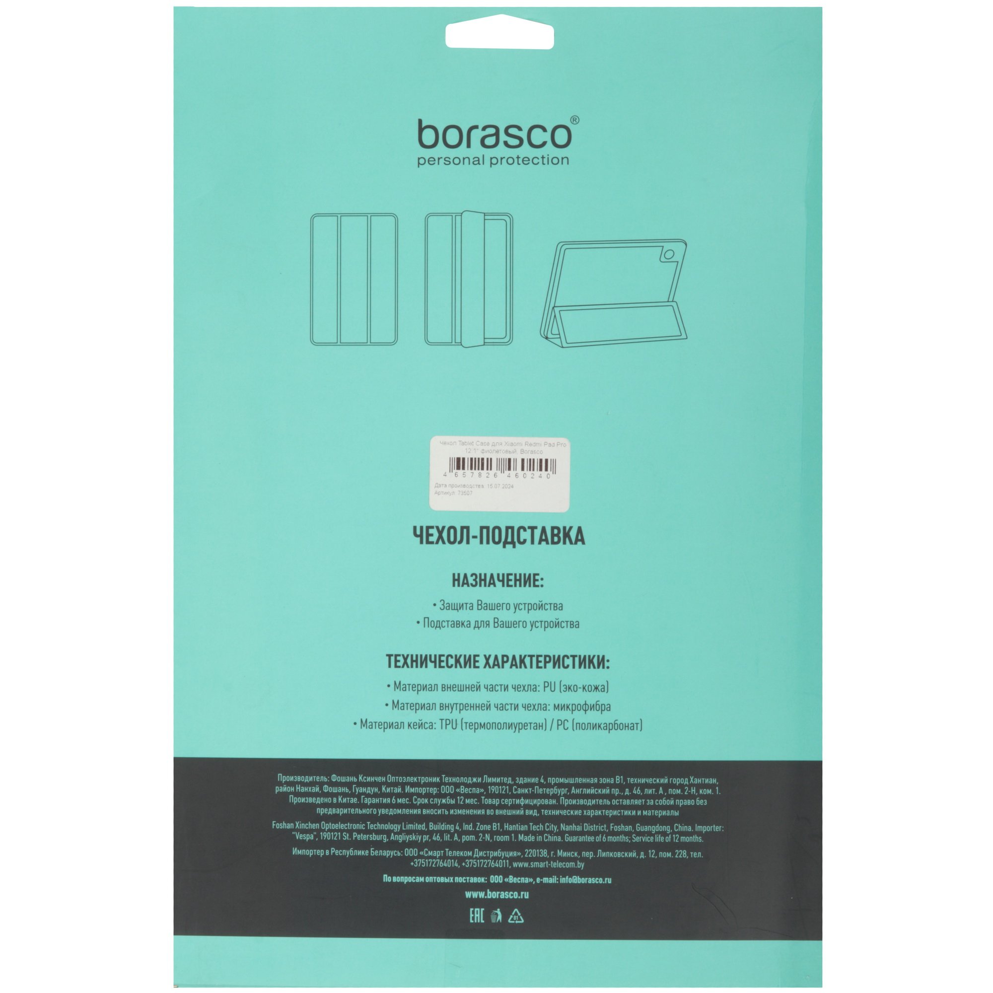 Чехол-книжка BoraSCO для Xiaomi Redmi Pad Pro фиолетового цвета выполнен из искусственной кожи, поликарбоната и термополиуретана. Он имеет подставку и функцию автоматической блокировки экрана. BoraSCO для Xiaomi Redmi Pad Pro защищает планшет от царапин и повреждений.