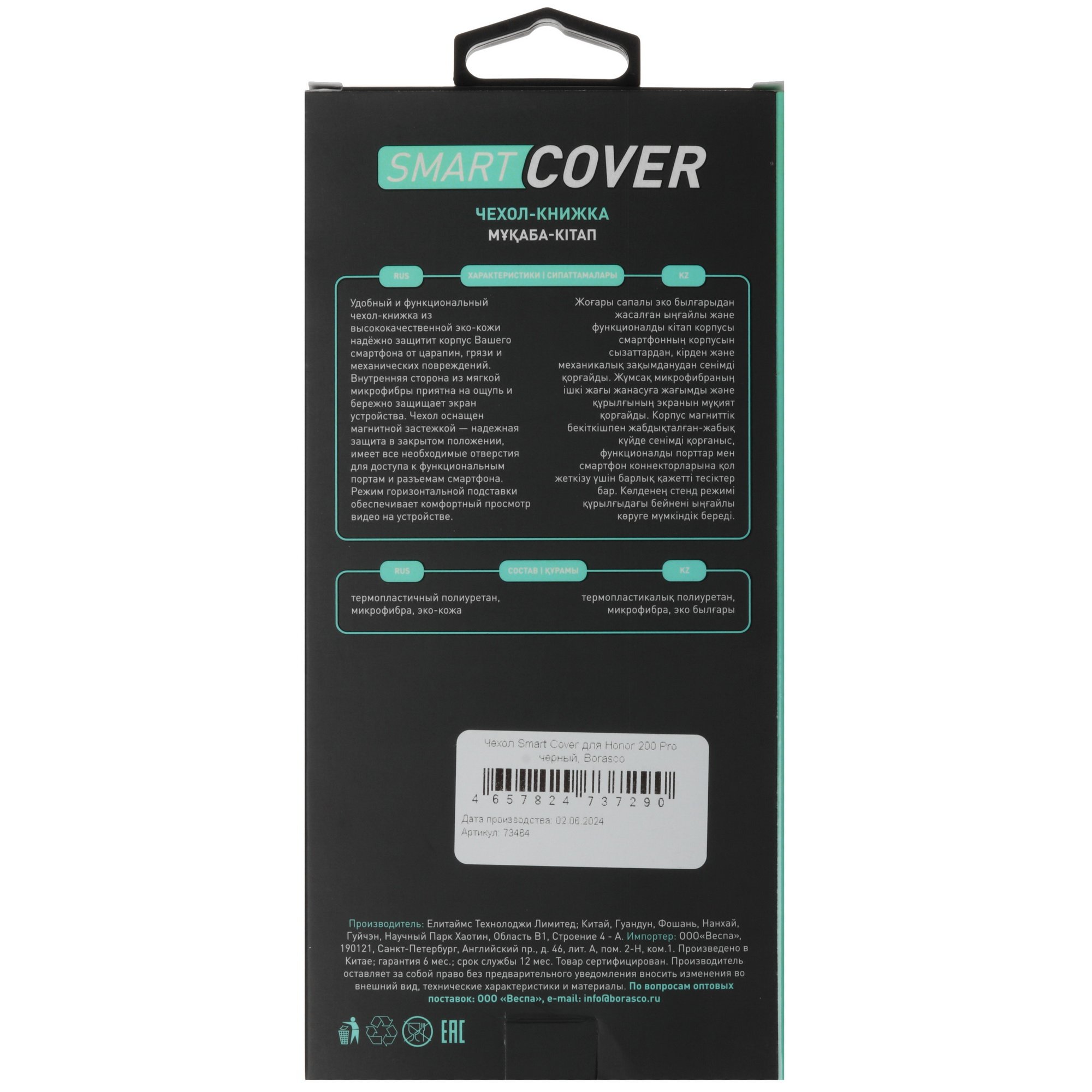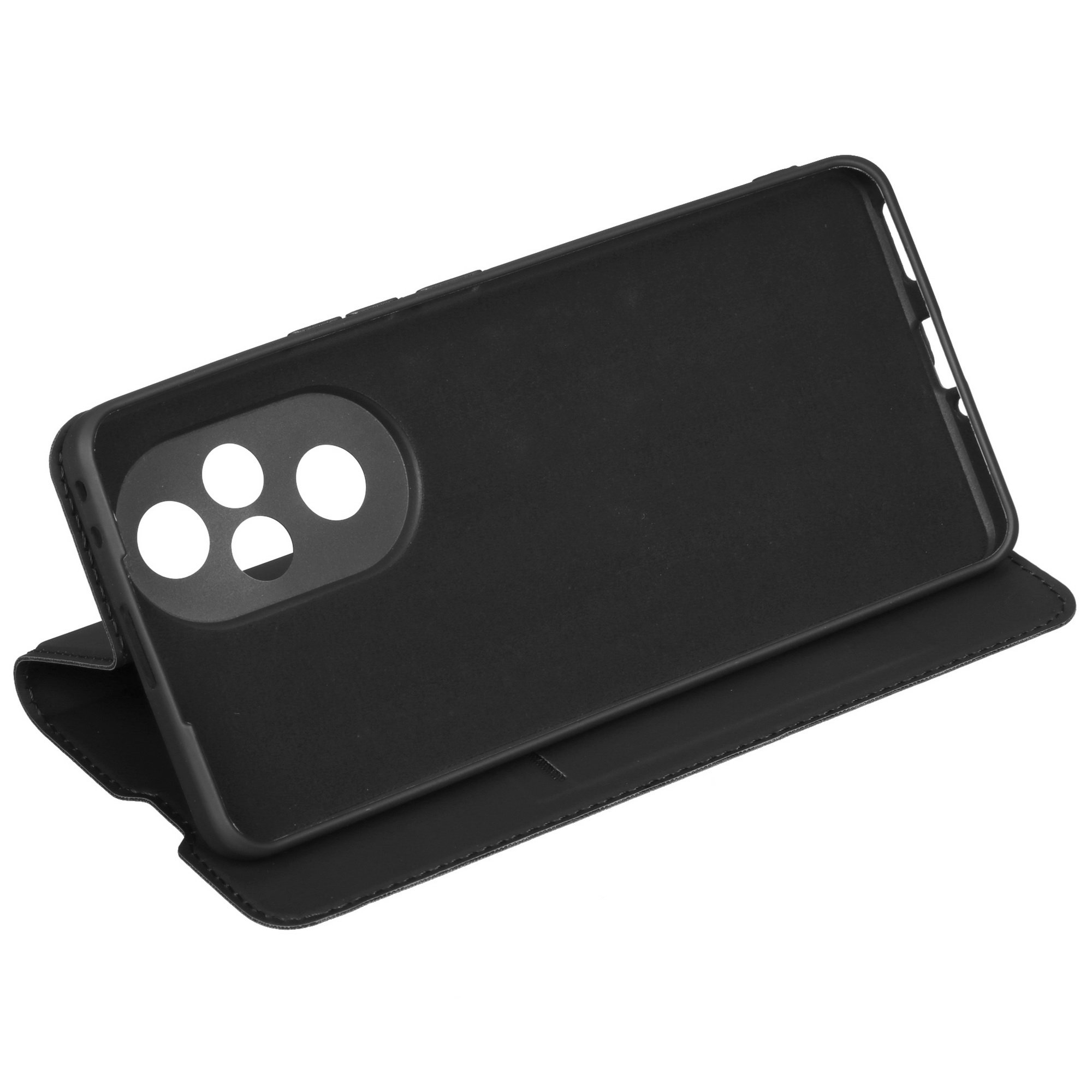 Чехол-книжка BoraSCO черного цвета не только защищает HONOR 200 Pro, но и повышает удобство пользования. Он оберегает от царапин и сколов корпус и экран благодаря своей конструкции: аксессуар выполнен в виде книжки. Устройство вставляется в основную часть чехла, соединенную с крышкой. Внутри крышка покрыта мягкого материала для бережного контакта с дисплеем. На ней выполнен карман, в который удобно прятать карты, купюры, чеки. Это позволяет не носить с собой кошелек.