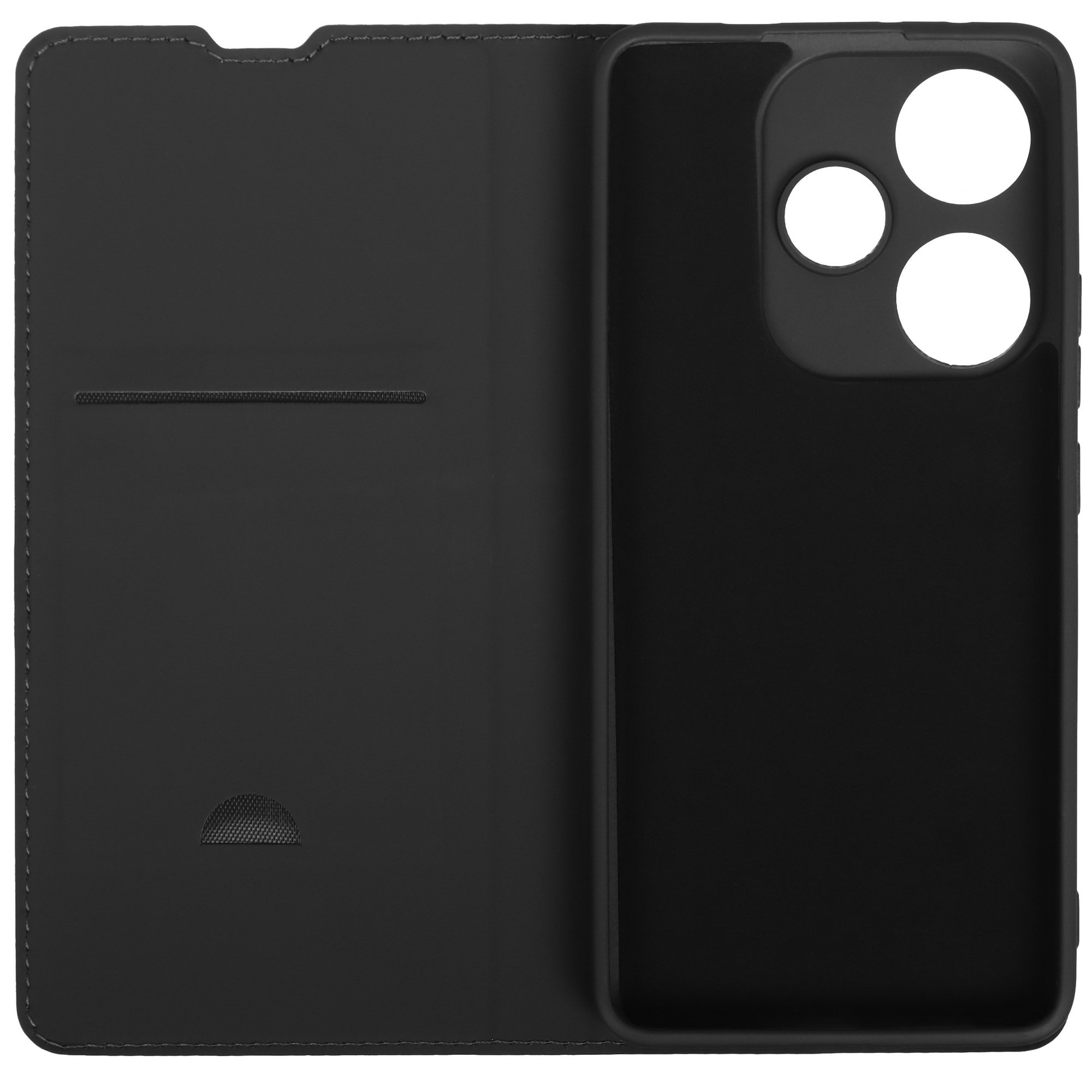 Чехол-книжка BoraSCO черного цвета создан для защиты POCO F6 от повреждений. Конструкция модели с откидывающейся крышкой позволяет защищать не только корпус, но и экран. Внутренняя сторона крышки сделана из мягкого материала, поэтому чехол не царапает экран. На ней выполнен карман для купюр, чеков и карт. Это позволяет не носить с собой кошелек.
