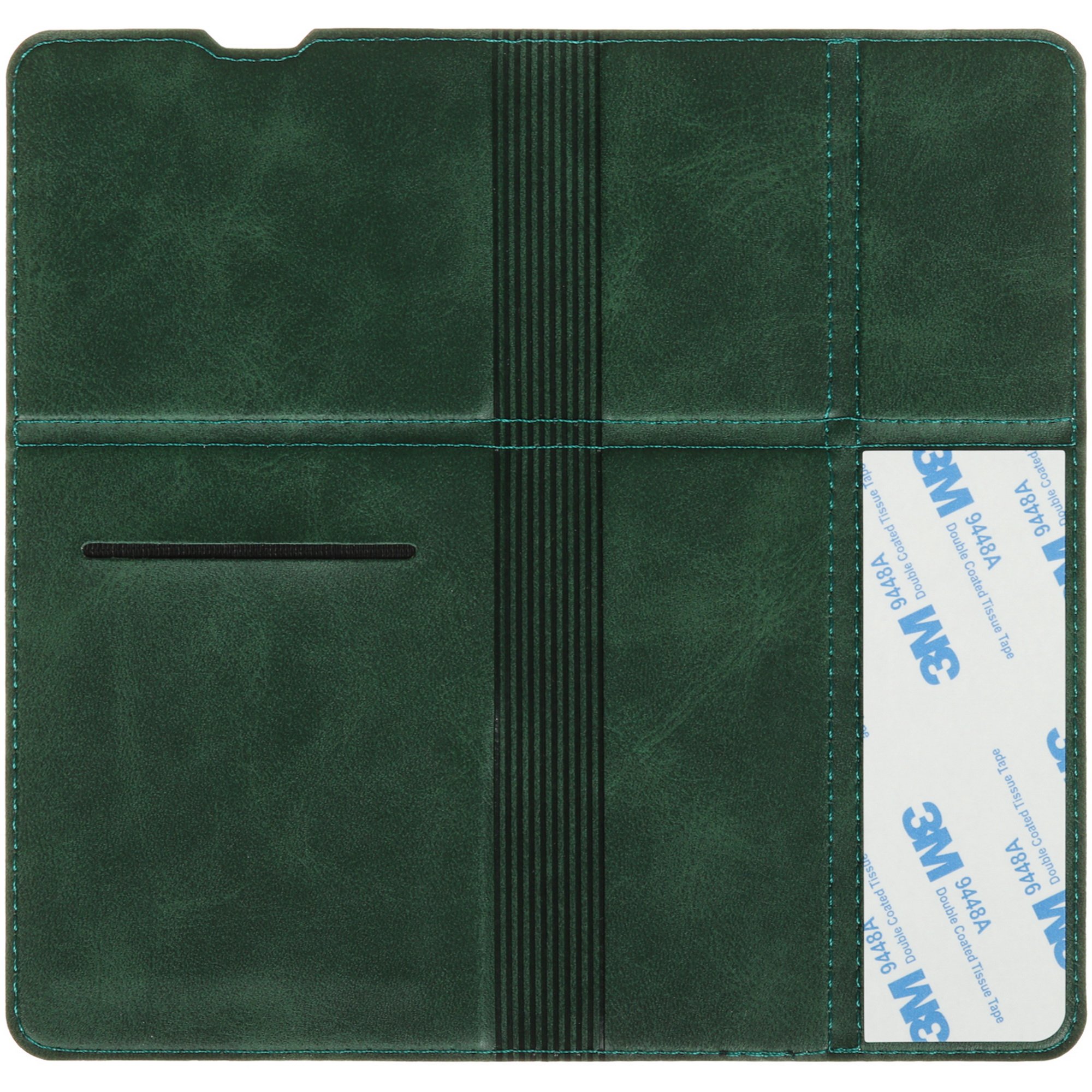 Чехол-книжка BoraSCO зеленого цвета устанавливается на корпус смартфонов диагональю 6.9". Он выполнен книжки и фиксируется к задней панели смартфона при помощи 3М-скотча. Аксессуар защищает от царапин и сколов не только корпус, но и экран устройства. На внутренней стороне есть карман для карт и купюр. Это позволяет не носить с собой кошелек.