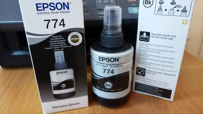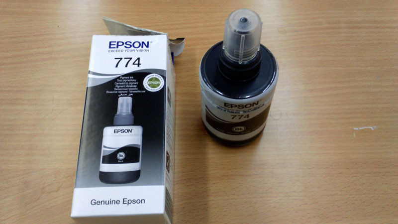 Одного пузырька Epson T7741 хватает на распечатку примерно 6000 страниц текста на стандартном формате бумаги – А4. Изображение не выцветает со временем, на нем отсутствуют подтеки и смазывания. Производители гарантируют полную герметичность контейнера Epson T7741, кроме того, конструкция обеспечивает легкую заправку емкости для чернил в отсеке принтера.
