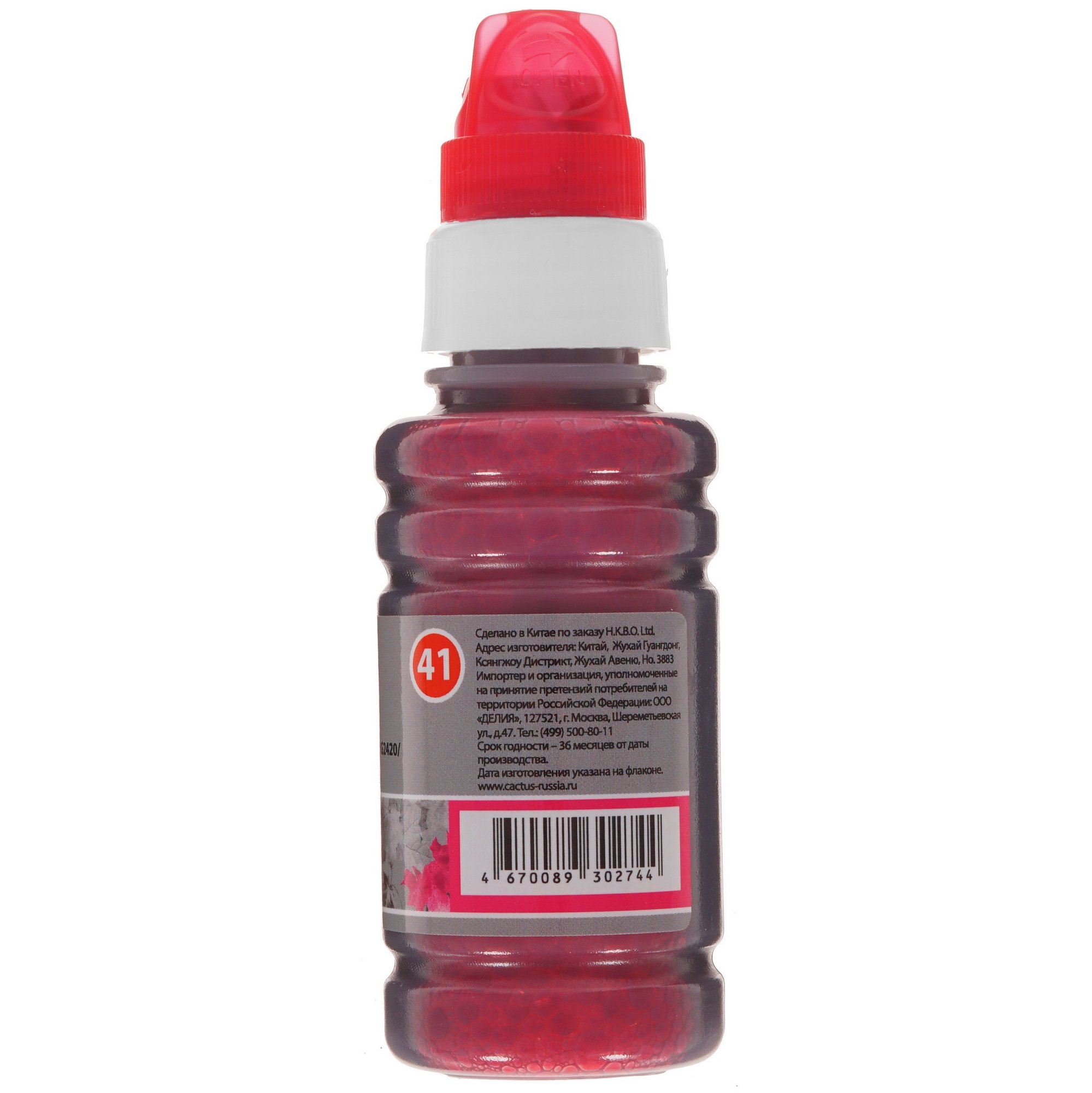 Основой чернил Cactus CS-GI41M является вода, смешанная с высококачественным органическим красителем и другими компонентами. Подобный состав обеспечивает равномерную и естественную передачу цветов на готовых отпечатках. Наилучшее качество изображения достигается при использовании матовой и полуглянцевой фотобумаги, а также бумаги для струйных принтеров со специальным впитывающим слоем, предотвращающим растекание краски.