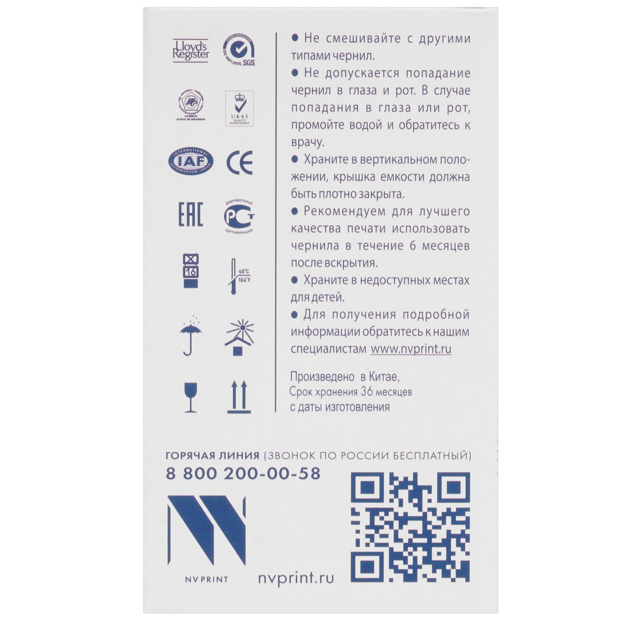 Чернила NVPrint универсальные на водной основе для аппаратов Epson, комплект 4 цвета по 100 мл