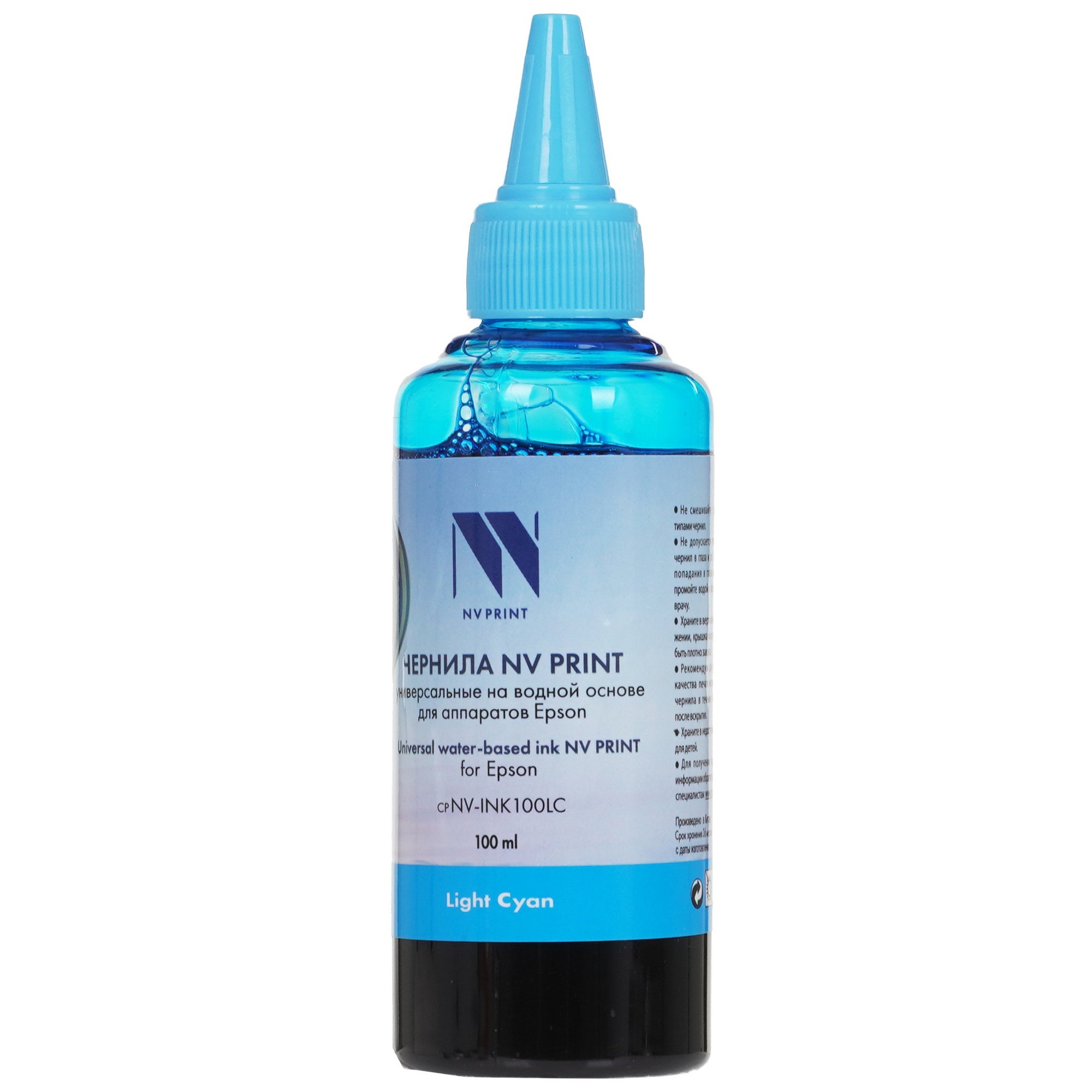 Чернила водорастворимые NV-Print NV-INK100LC светло-голубого цвета используются в качестве расходного материала для печати на струйных принтерах. Это водный раствор красящих веществ. С их помощью получают изображение на бумаге. Краска обеспечивает точную, реалистичную передачу цветов на фотобумаге и других носителях. Материал совместим с печатающими устройствами.