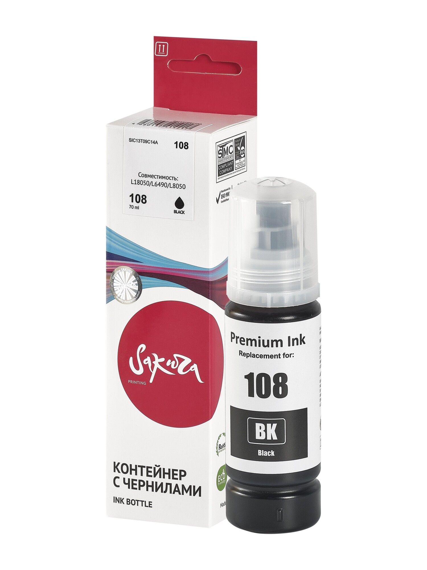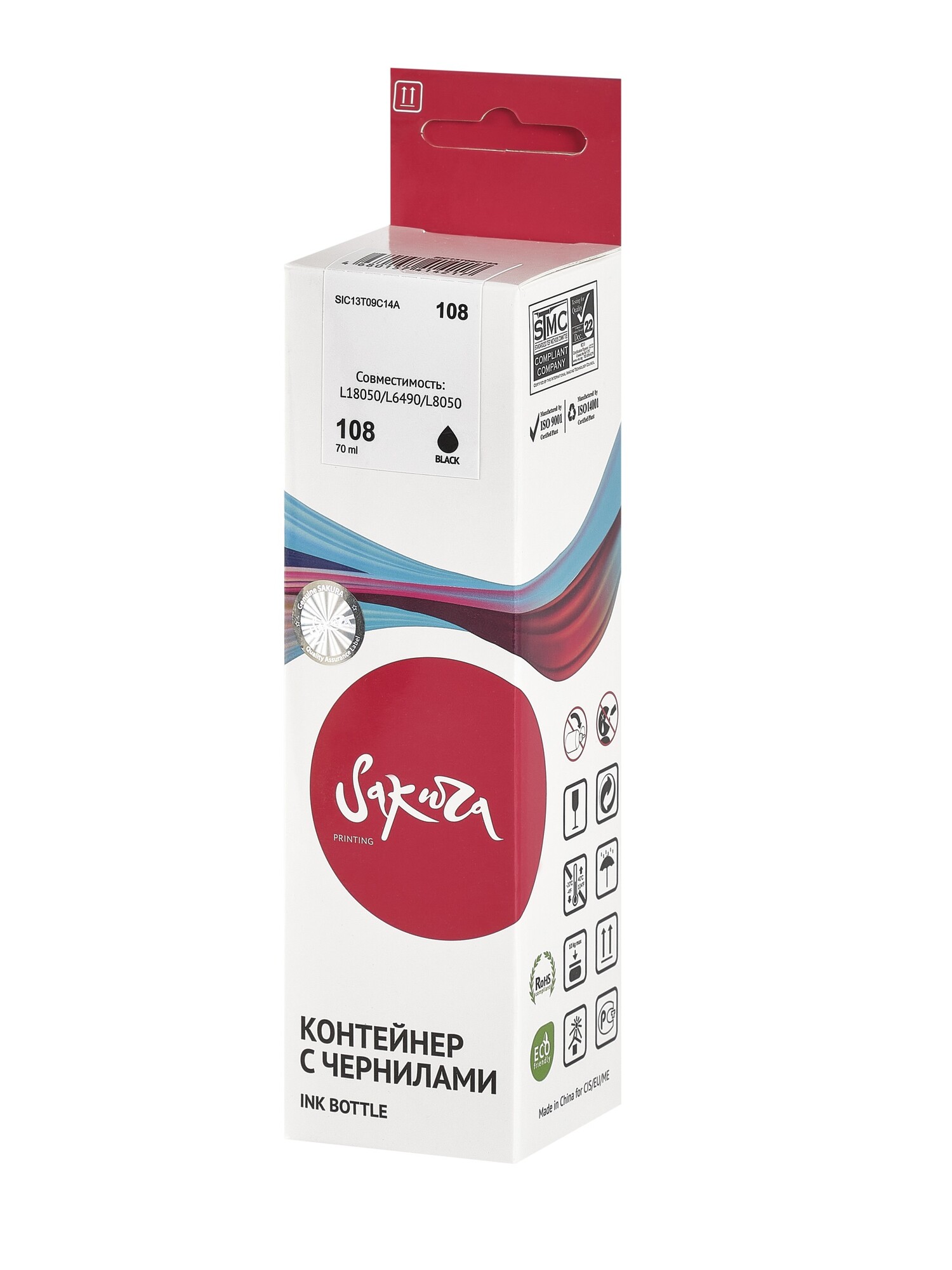 Контейнер с чернилами Sakura C13T09C14A (108 BK) для Epson, черный, 70 мл.