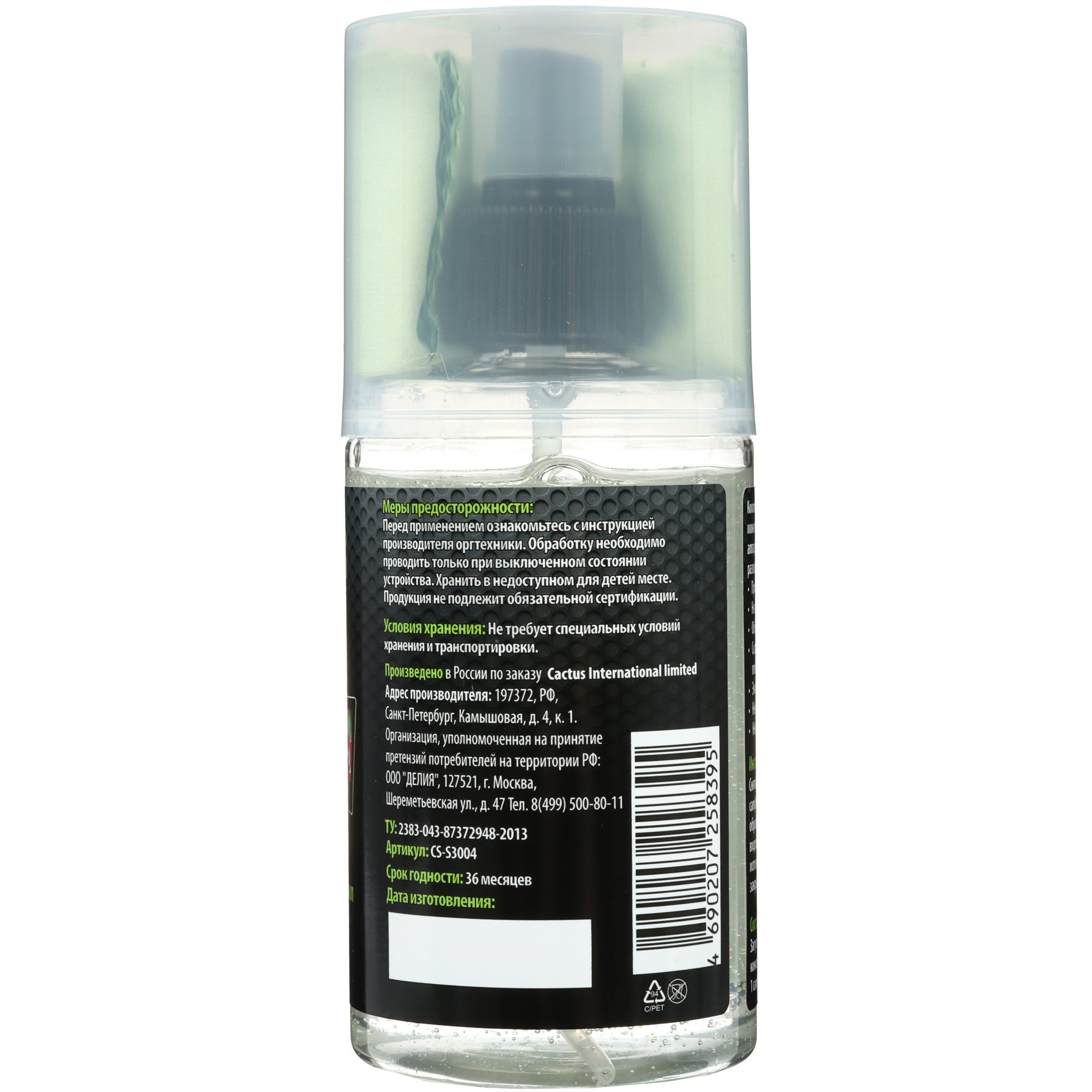 Набор Cactus CS-S3004 включает в себя гель и сухую салфетку 20x23 см. Комплект предназначен для очистки оптических поверхностей и экранов. В составе геля – антистатический компонент, вода, загуститель, консервант и неионогенные ПАВ. Набор Cactus CS-S3004 рассчитан на обработку устройств в выключенном состоянии.