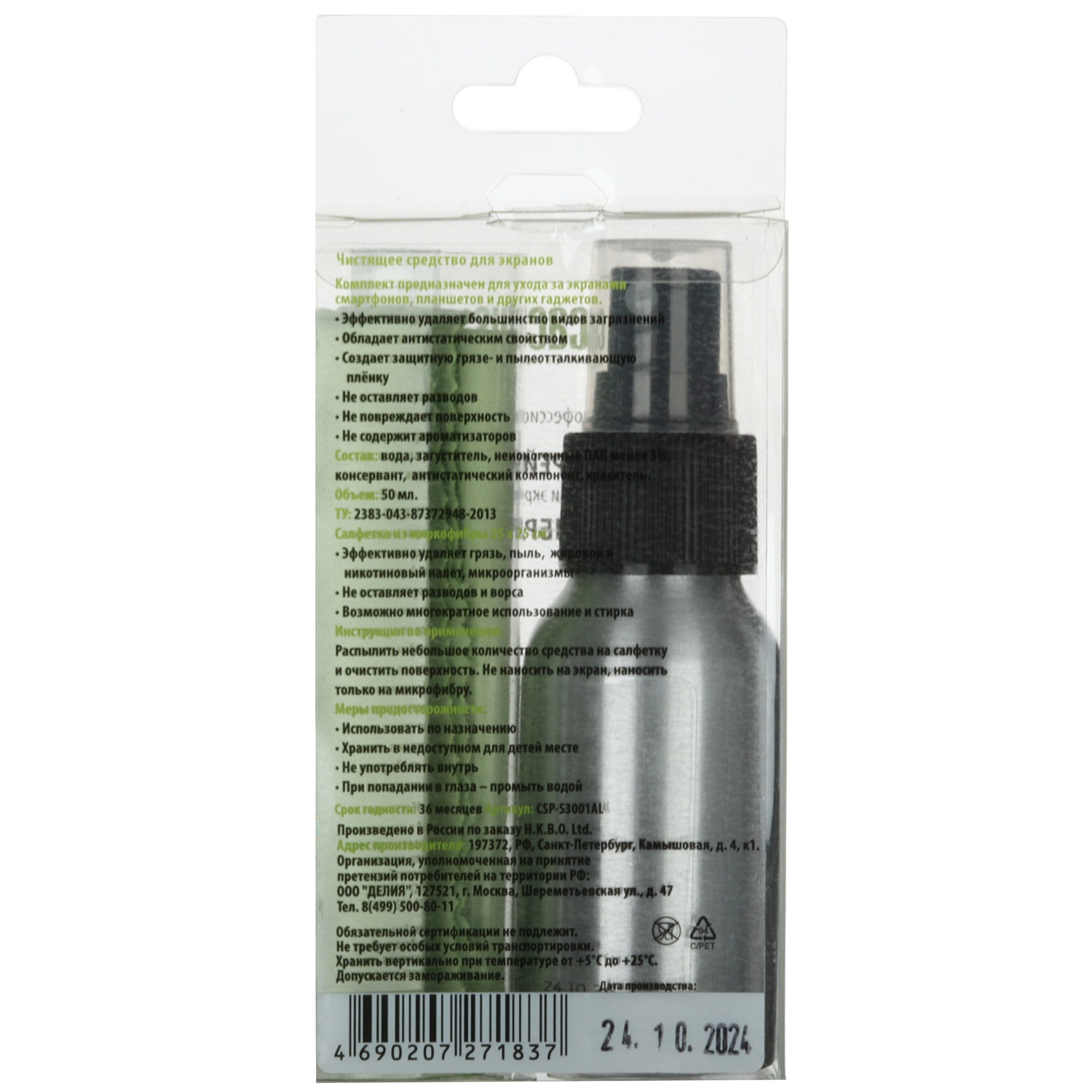 Набор Cactus CSP-S3001AL включает в себя спрей и сухую салфетку 25x25 см из полиамида и полиэстера. Комплект предназначен для очистки оптических поверхностей и экранов. В составе спрея – антистатический компонент, вода, загуститель, консервант и краситель. После применения набора Cactus CSP-S3001AL на поверхности не остается разводов.