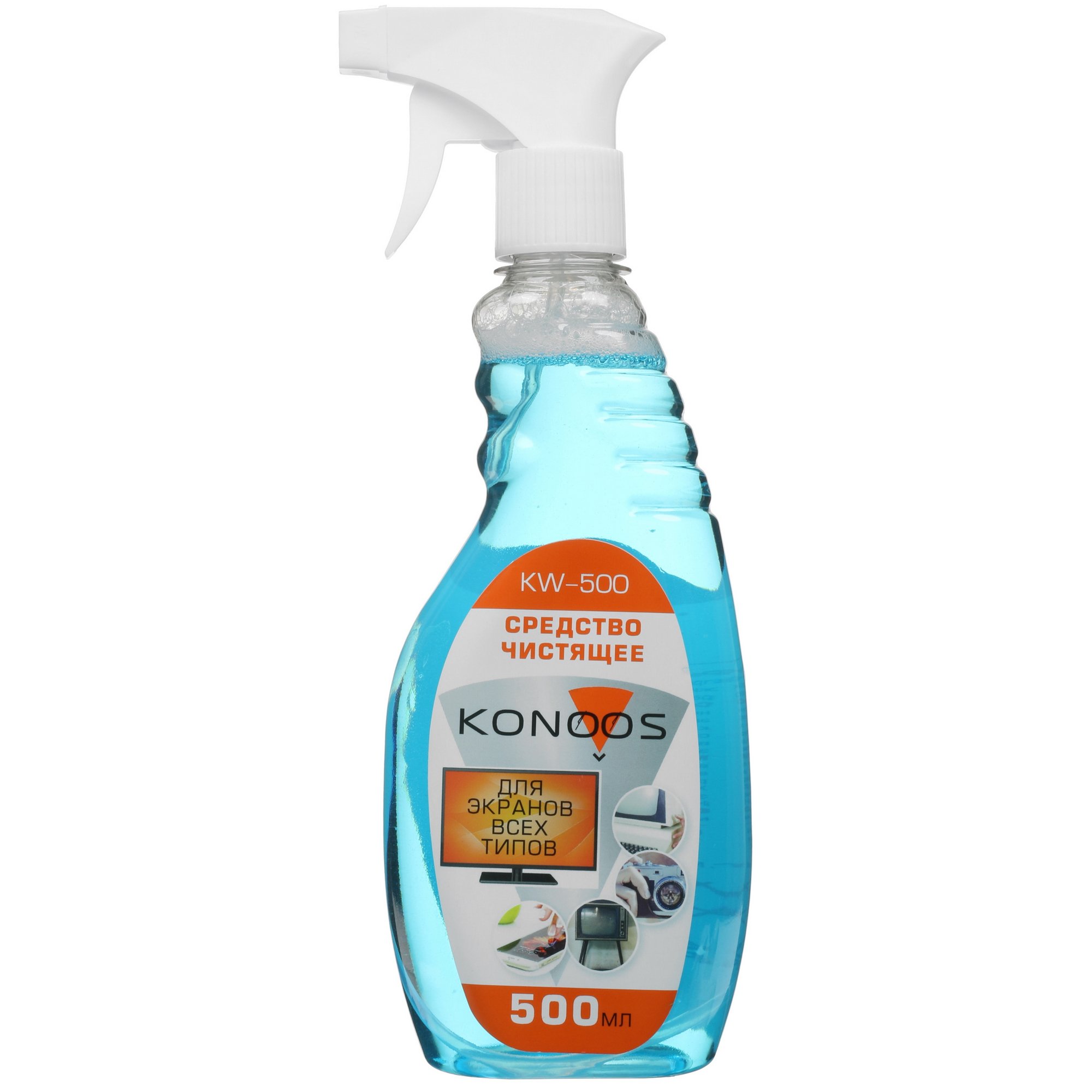 Спрей Konoos KW-500 для поверхностей, для экранов, 500 мл – эффективное средство, которое можно использовать для очистки телефонов, планшетов, компьютеров и других стеклянных поверхностей. Жидкость необходимо нанести небольшим слоем на поверхность, затем протереть ее мягкой салфеткой.