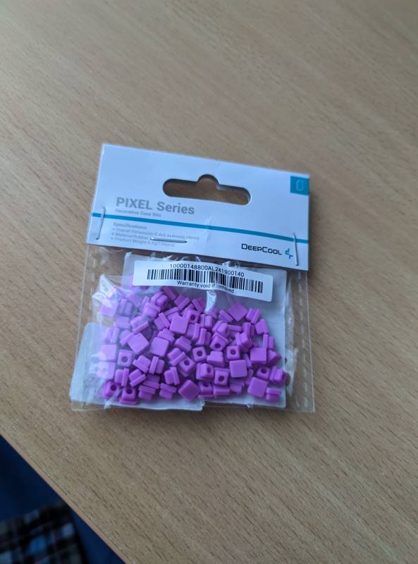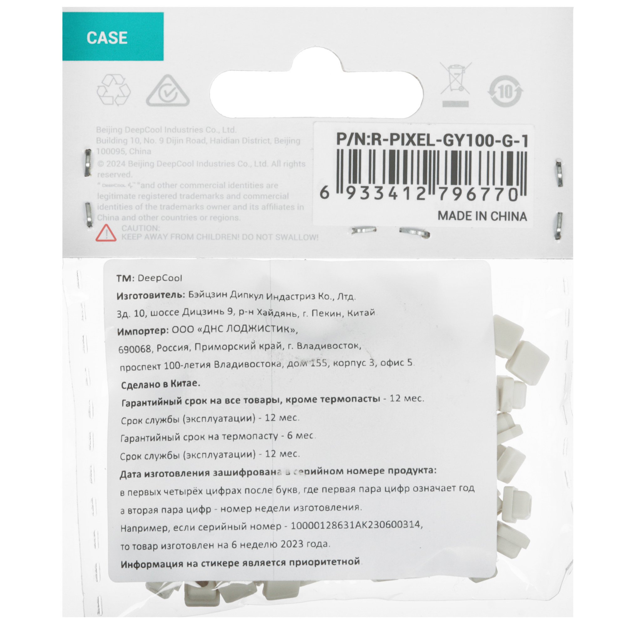 Декоративные элементы DEEPCOOL PIXEL Series позволят сделать корпус одноименного бренда уникальным за счет украшения его решеток. Модель представлена 100 деталями с размерами 5.4x5.4x4 мм каждая и с серой расцветкой. Для изготовления декоративных элементов DEEPCOOL PIXEL Series используется резина. Каждая деталь отлита и обрезана точно под размер решеток различных моделей корпусов DEEPCOOL. С помощью декоративных элементов можно создавать 8-битных персонажей на решетках вашего корпуса или оставлять на них заметки.