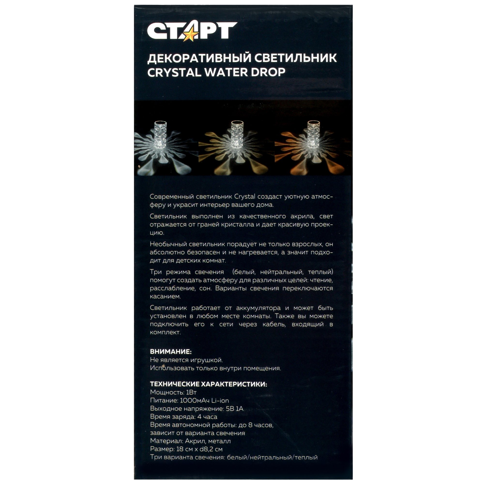 Светильник СТАРТ Crystal Waist может использоваться как предмет декора и для чтения, расслабления и сна. Устройство имеет кристаллическую форму, поэтому проецирует свет в необычных узорах. Вы можете выбирать нейтральную, теплую и холодную температуру. Варианты свечения и яркость света можно легко переключать на сенсорной панели управления.