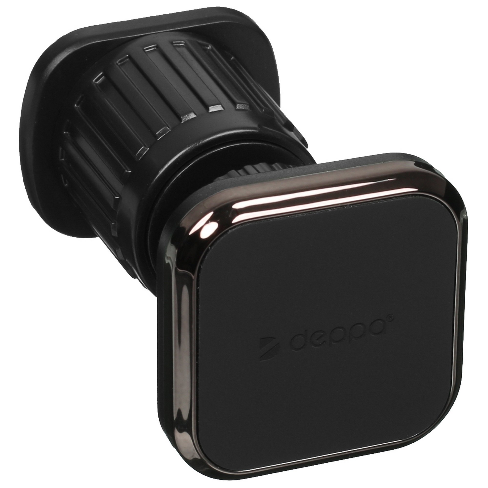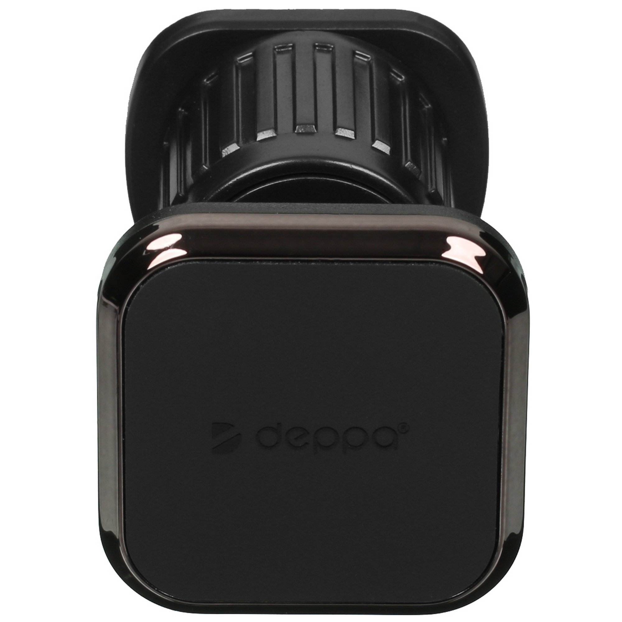 Держатель автомобильный Deppa Mage Air 3 выполнен в черном корпусе из пластика. Он крепится на вентиляционную решетку при помощи зажима и надежно удерживает смартфоны весом до 200 г. Для фиксации устройства используется магнитное крепление. Модель укомплектована металлической пластиной, которая приклеивается на корпус устройства или устанавливается под чехол. Именно к ней надежно фиксируются четыре неодимовых магнита.