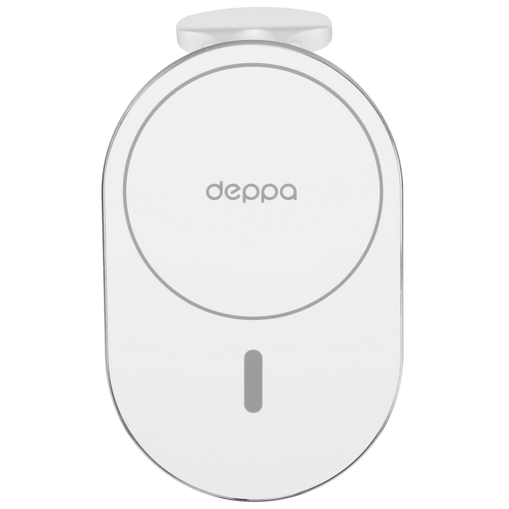 Держатель автомобильный Deppa Mage Safe Flat с функцией зарядного устройства обеспечивает комфорт в поездках. Благодаря платформе с магнитами он прочно фиксирует мобильное устройство, позволяет легко менять его положение и не ограничивает доступ к информации на экране. Крепление держателя на вентиляционной решетке выполняется при помощи зажимного механизма. Deppa Mage Safe Flat поддерживает стандарт беспроводной зарядки Qi 15 Вт и совместим с устройствами MagSafe от Apple. В комплекте поставляется металлическое кольцо с клеевым слоем.