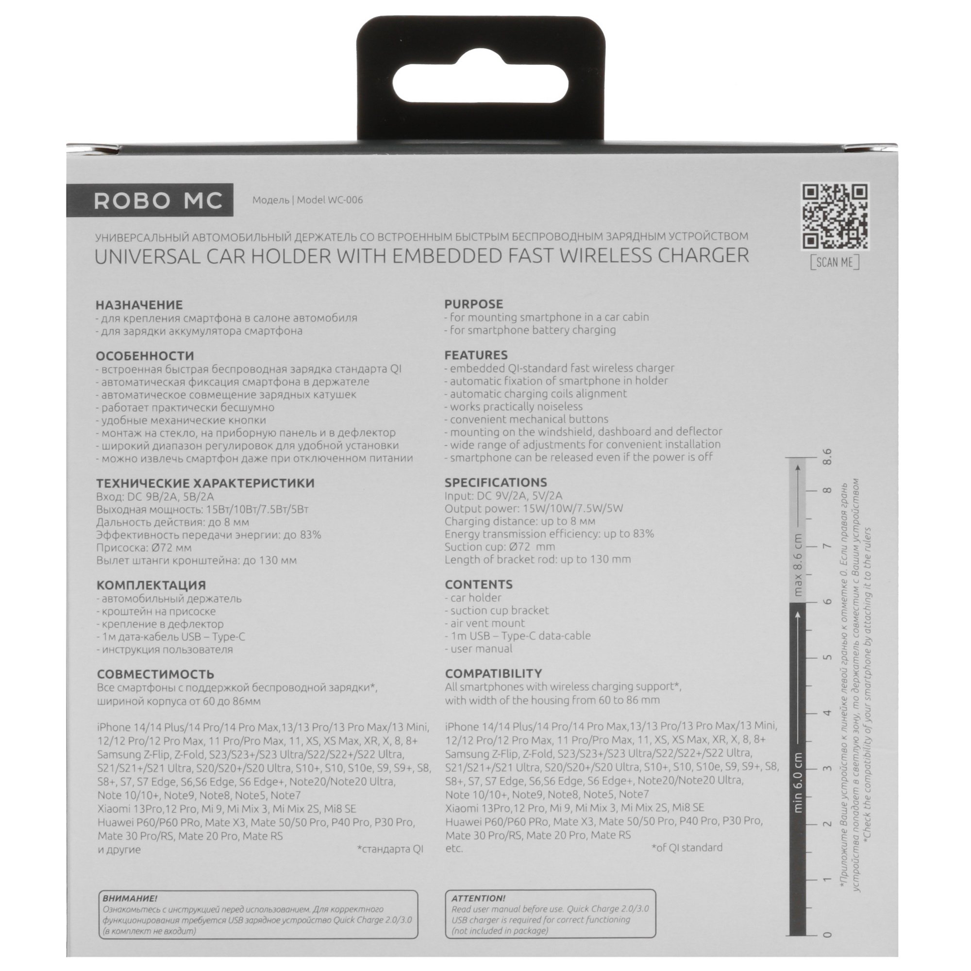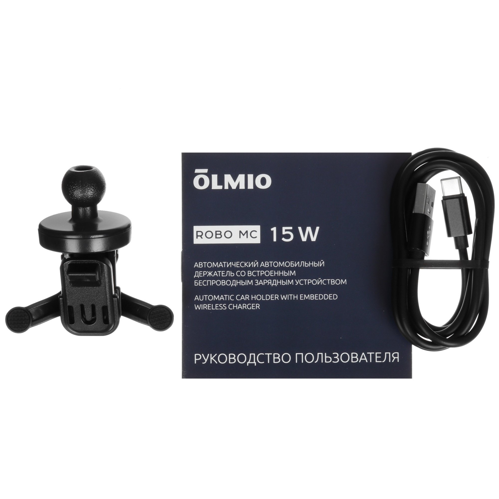 Держатель автомобильный Olmio Robo MC поддерживает функцию беспроводной зарядки Qi1 с выходной мощностью 15 Вт. Благодаря этой технологии телефон будет автоматически заряжаться при установке в держатель. Зарядное устройство поддерживает функцию магнитного позиционирования для надежного закрепления телефона. Модель сразу оснащена кабелем USB Type-C – USB и крепежом для него. Дополнительно держатель оснащен LED-индикацией и датчиком приближения.