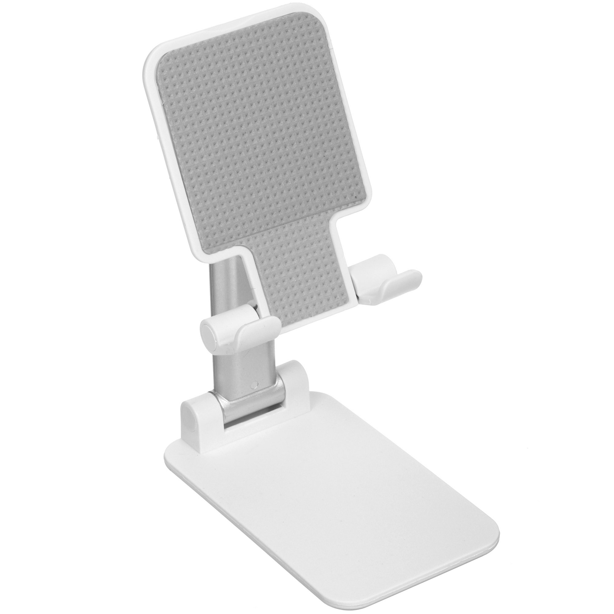 Держатель настольный WIIIX DST-401 белого цвета с серебристым обеспечивает устойчивое положение и безопасное крепление смартфонов весом до 300 г. Модель устанавливается на стол, полку, любую другую горизонтальную поверхность с помощью подставки. Для фиксации устройства в держателе используется подставка.