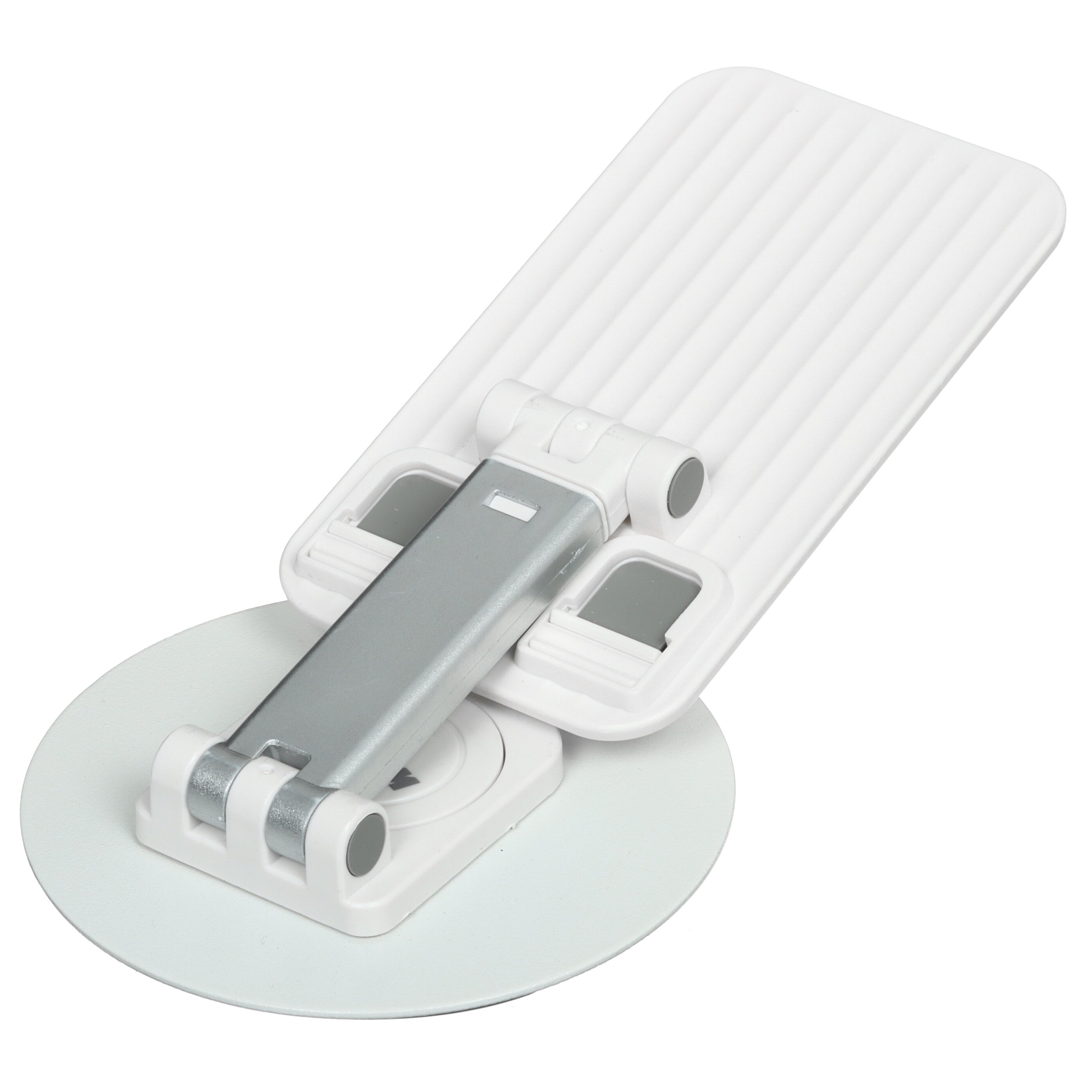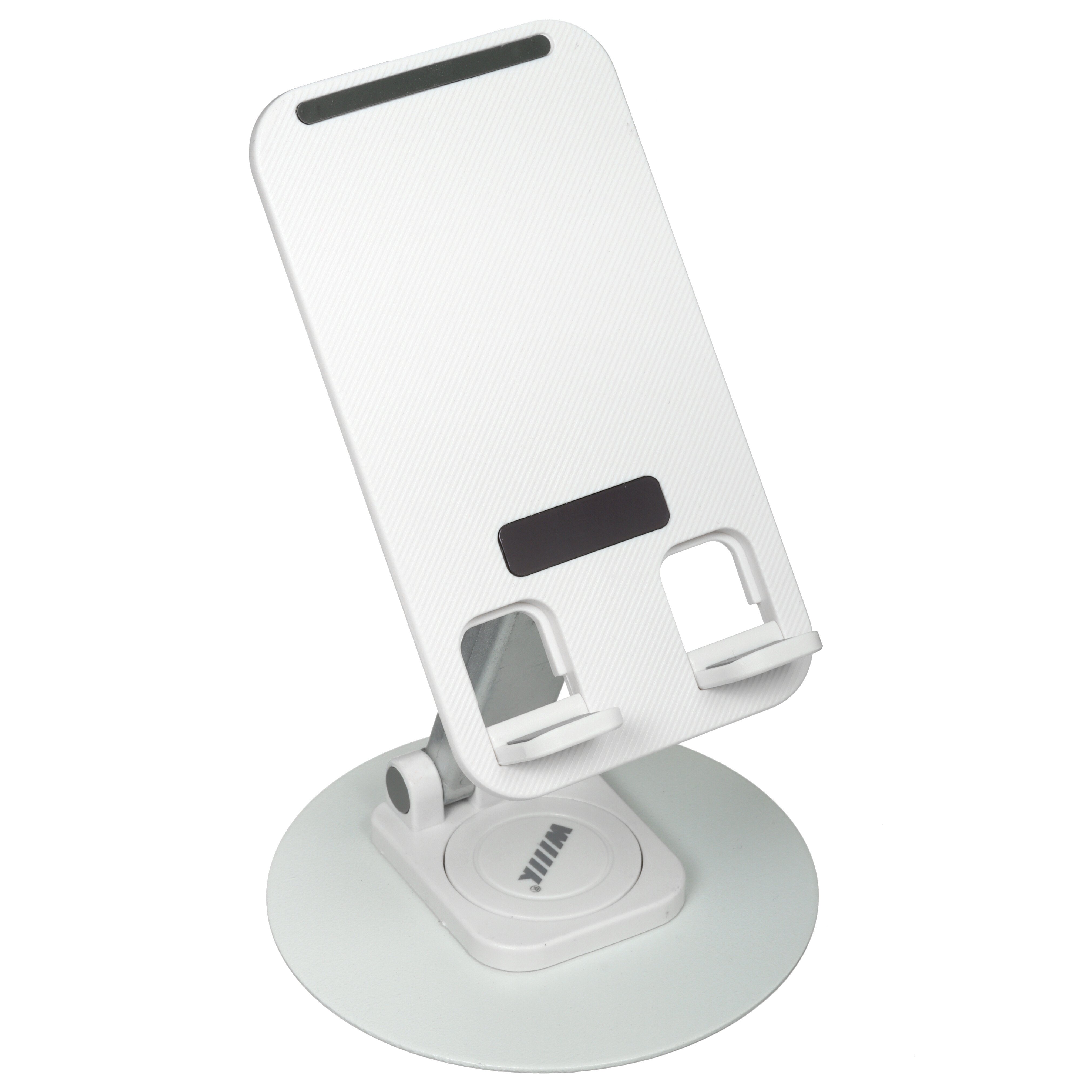 Держатель настольный WIIIX DST-723 оснащен подвижной штангой длиной 19.5 см. Конструкция позволяет менять угол наклона смартфона, поворачивать его на 360° и фиксировать в удобном положении для игр, ввода текста или просмотра контента. Корпус из пластика и металла устойчив к влаге и механическим воздействиям. Благодаря складной конструкции держатель поместиться в кармане сумки, куртки, он будет занимать минимум места при хранении в ящике стола, на полке.